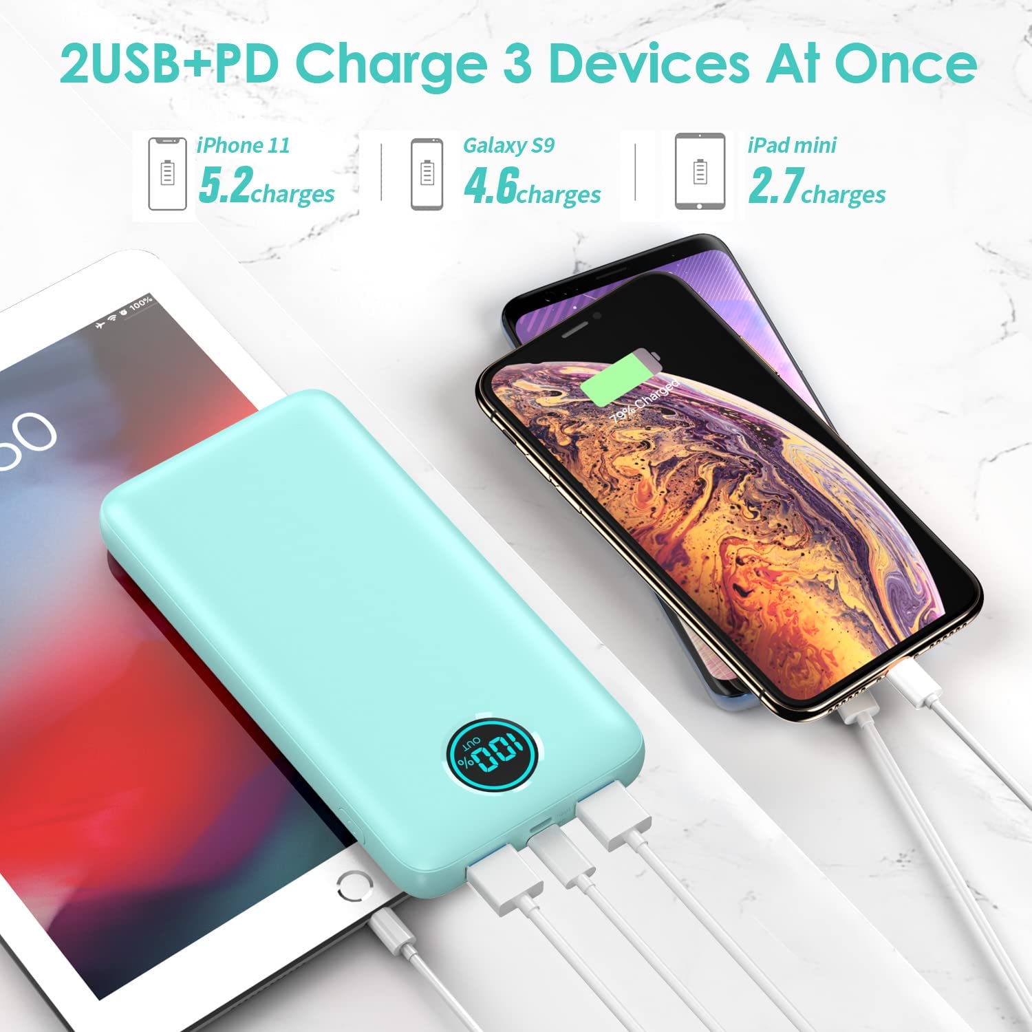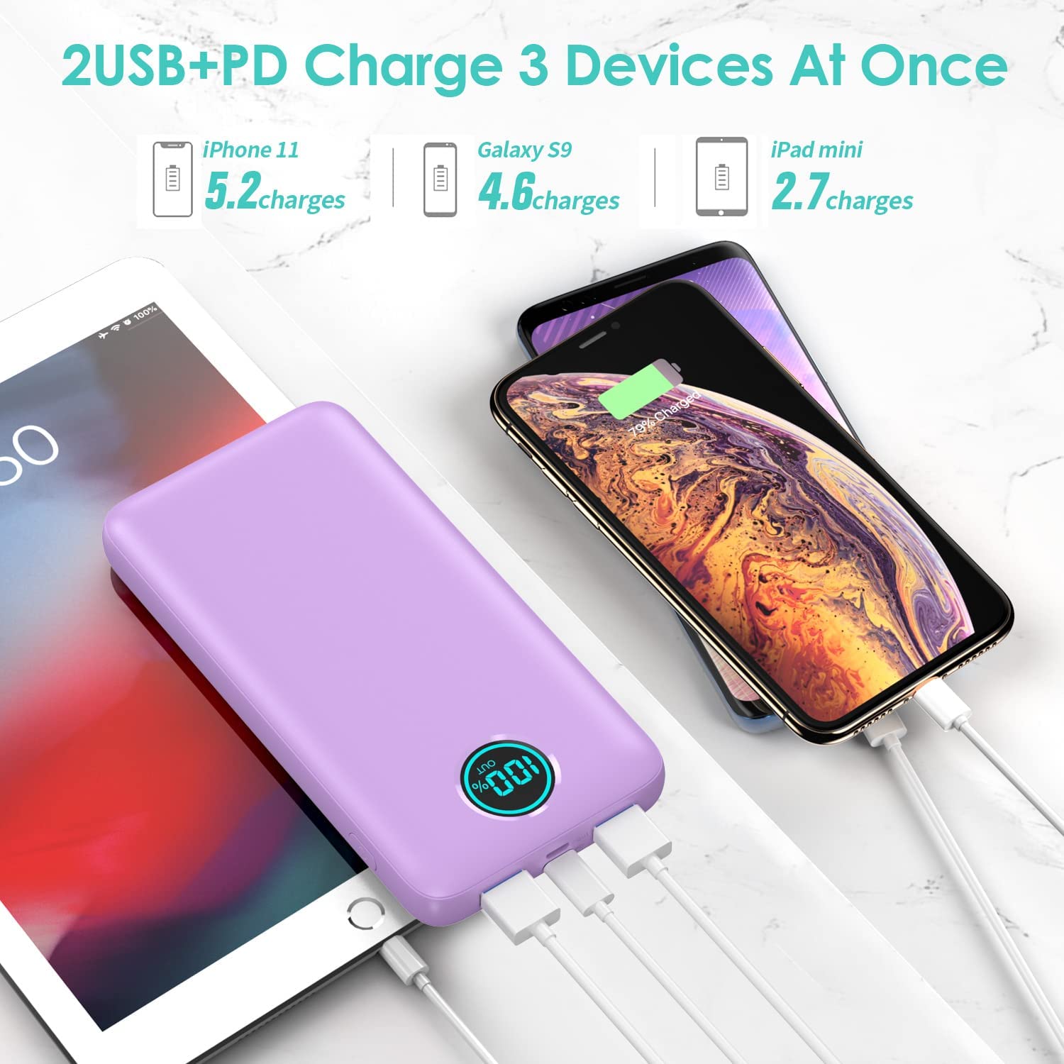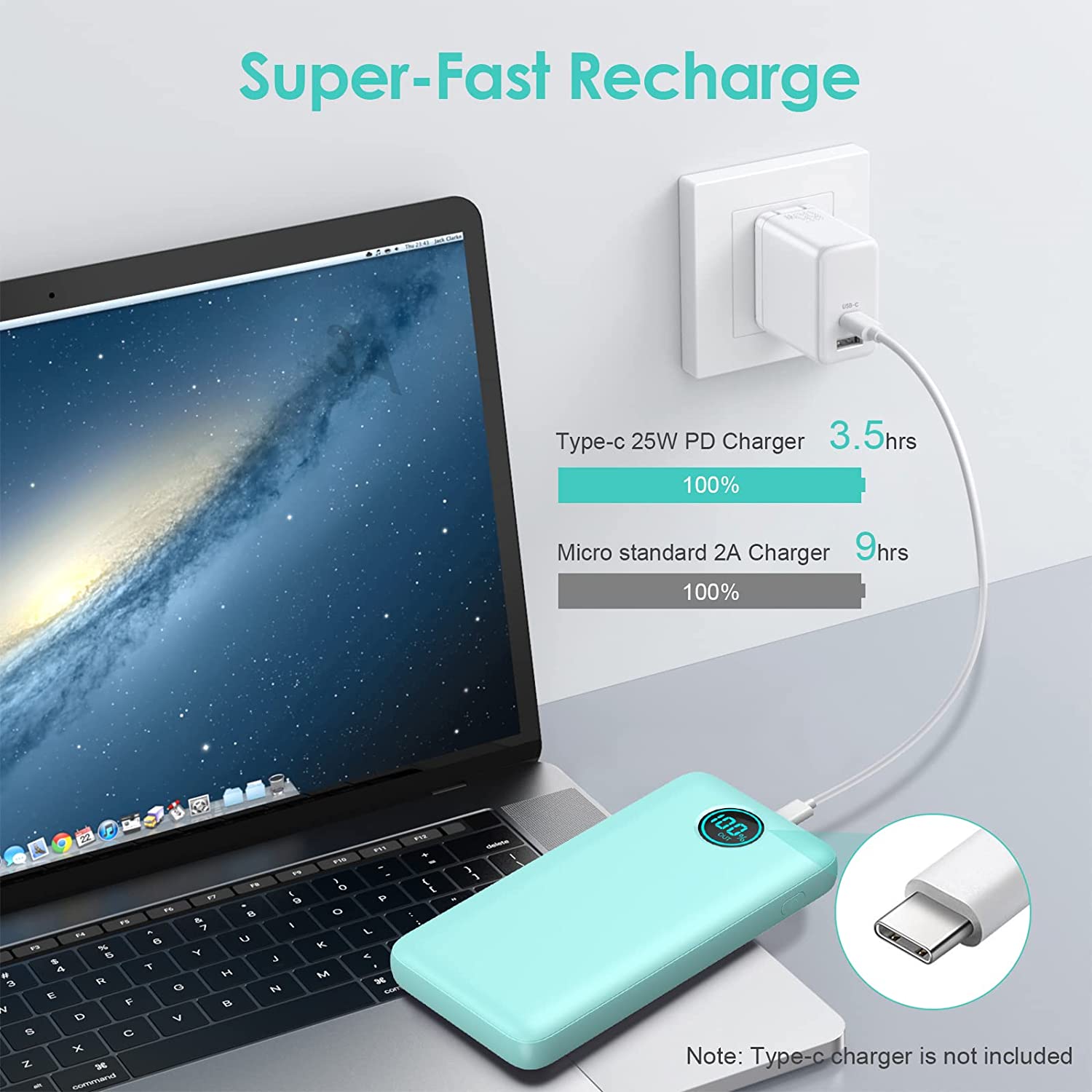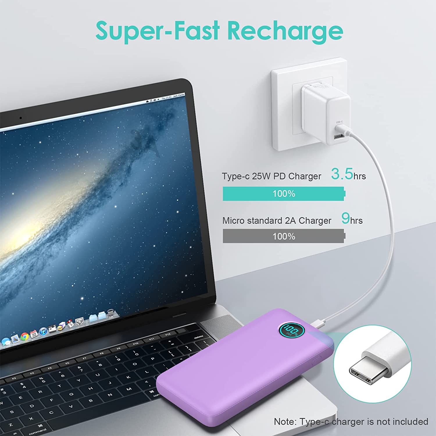 • 【3 Output -Charge 3 Devices At Once】Power bank with 3 Output Ports - QC4.0 output, PD output, 2.1A USB output, you can charge 3 devices simultaneously.Power Delivery 4.0 output and Quick Charge 4.0 output combine to deliver an optimized charge to your devices at up to 25W. Compared with non-fast charging power bank, save more than half of the time.
