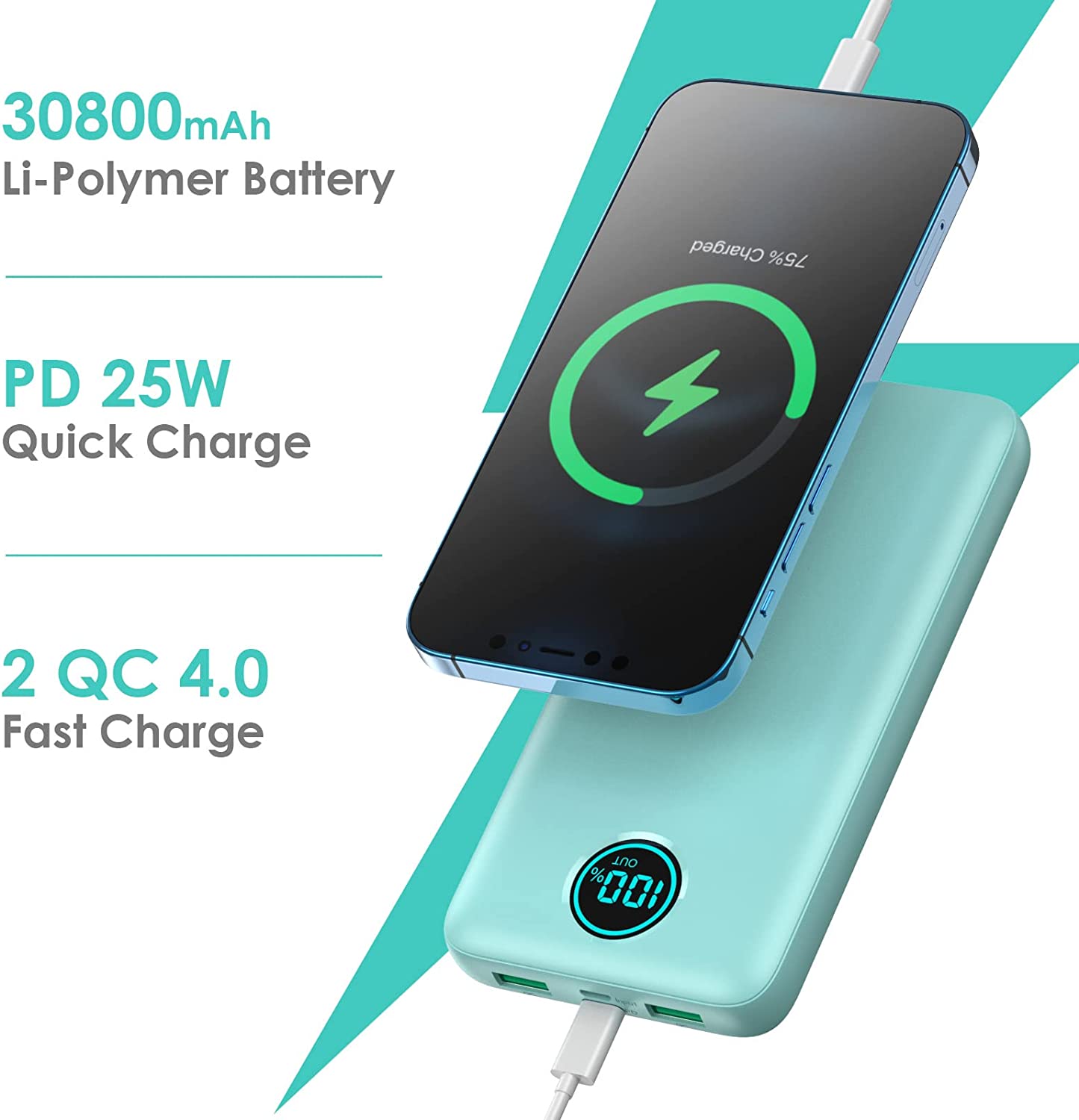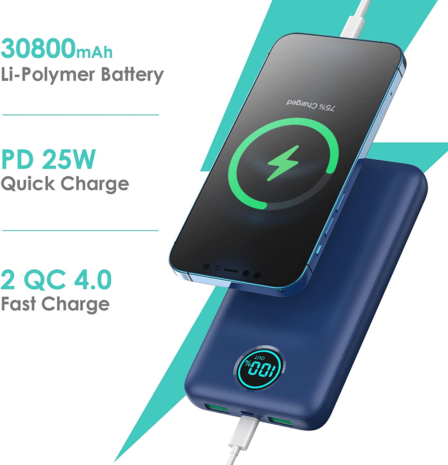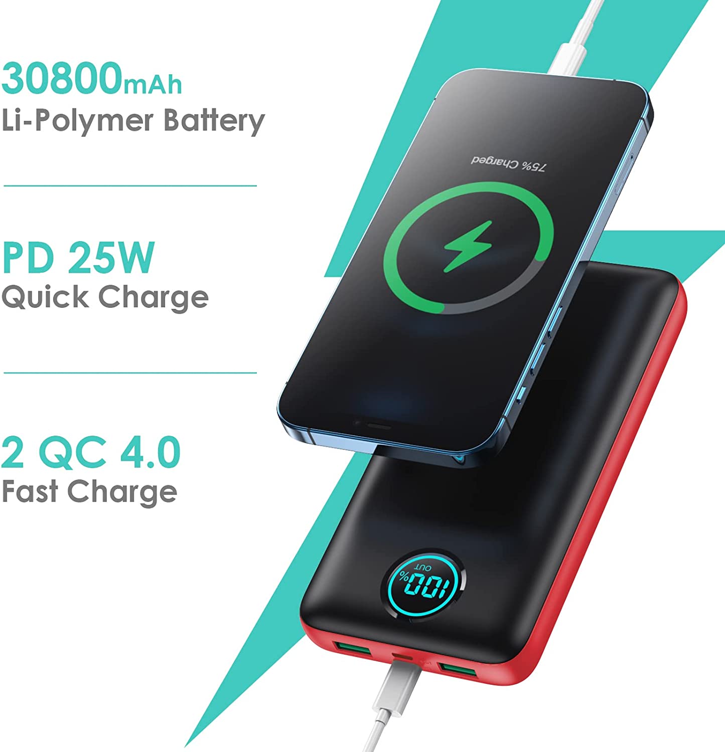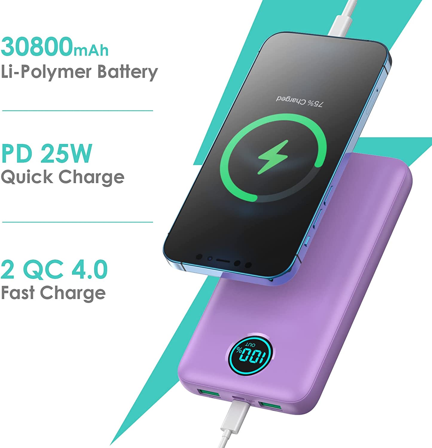 Portable Charger Power Bank 30,800mAh LCD Display Power Bank,25W PD Fast Charging +QC 4.0 Quick Phone Charging Power Bank Tri-Outputs Battery Pack Compatible with iPhone,Android etc(Black)
