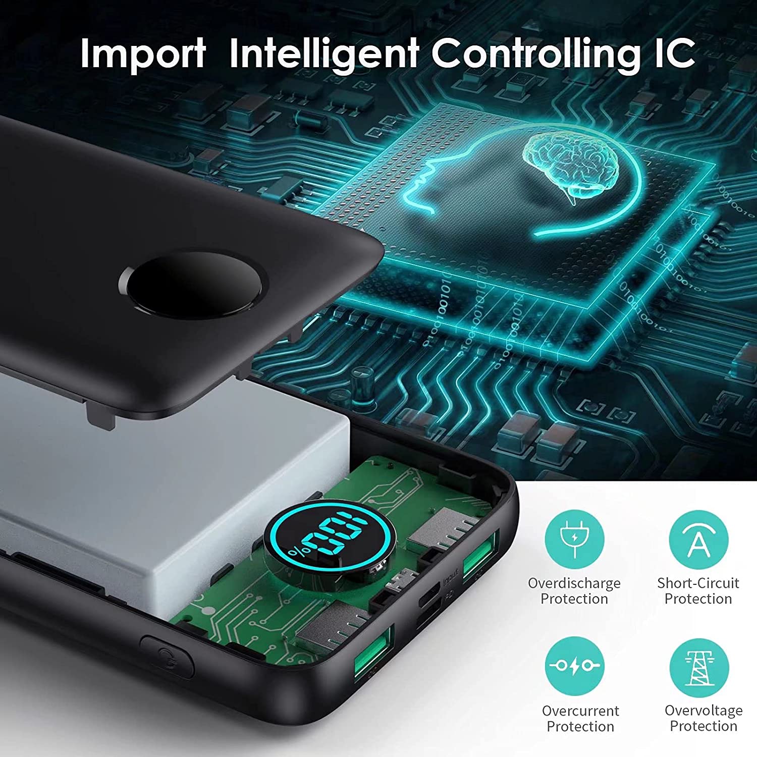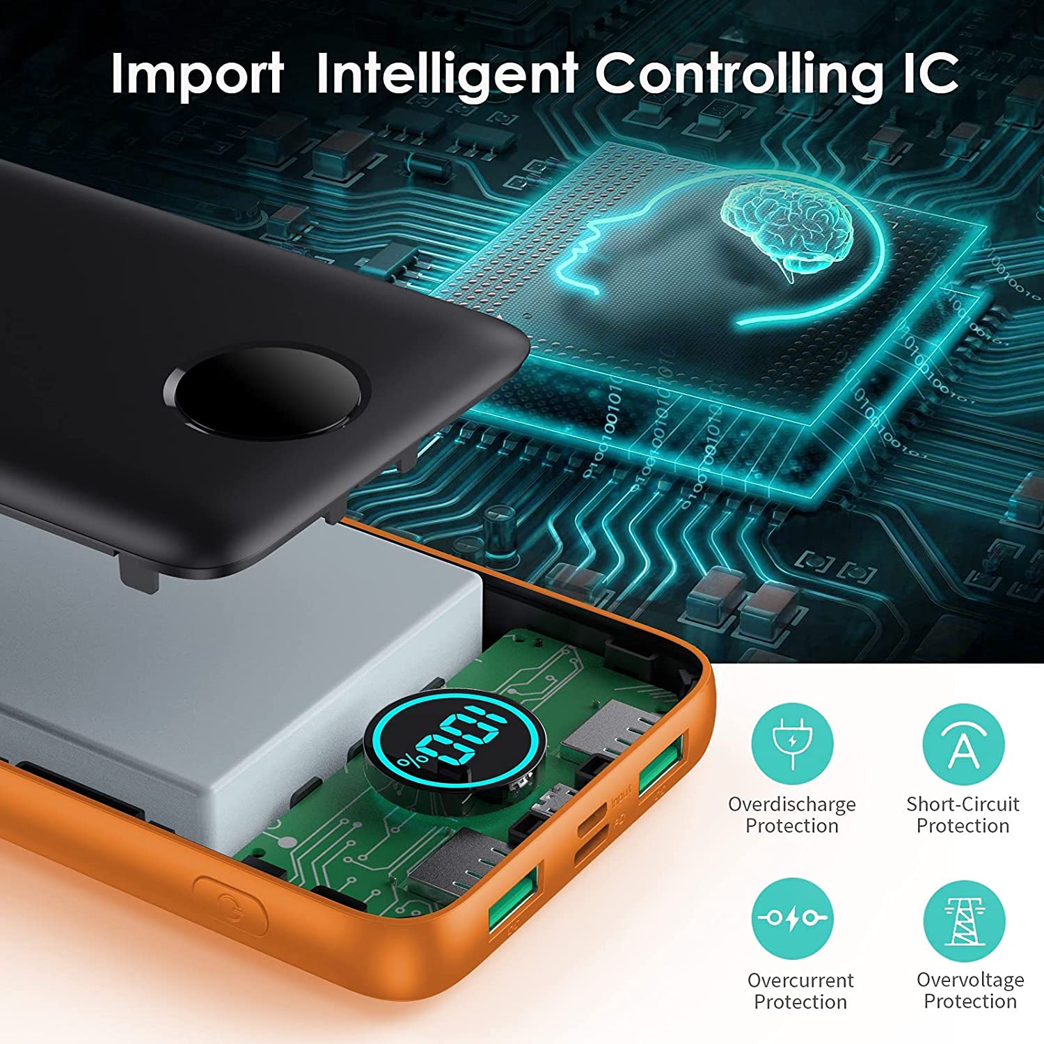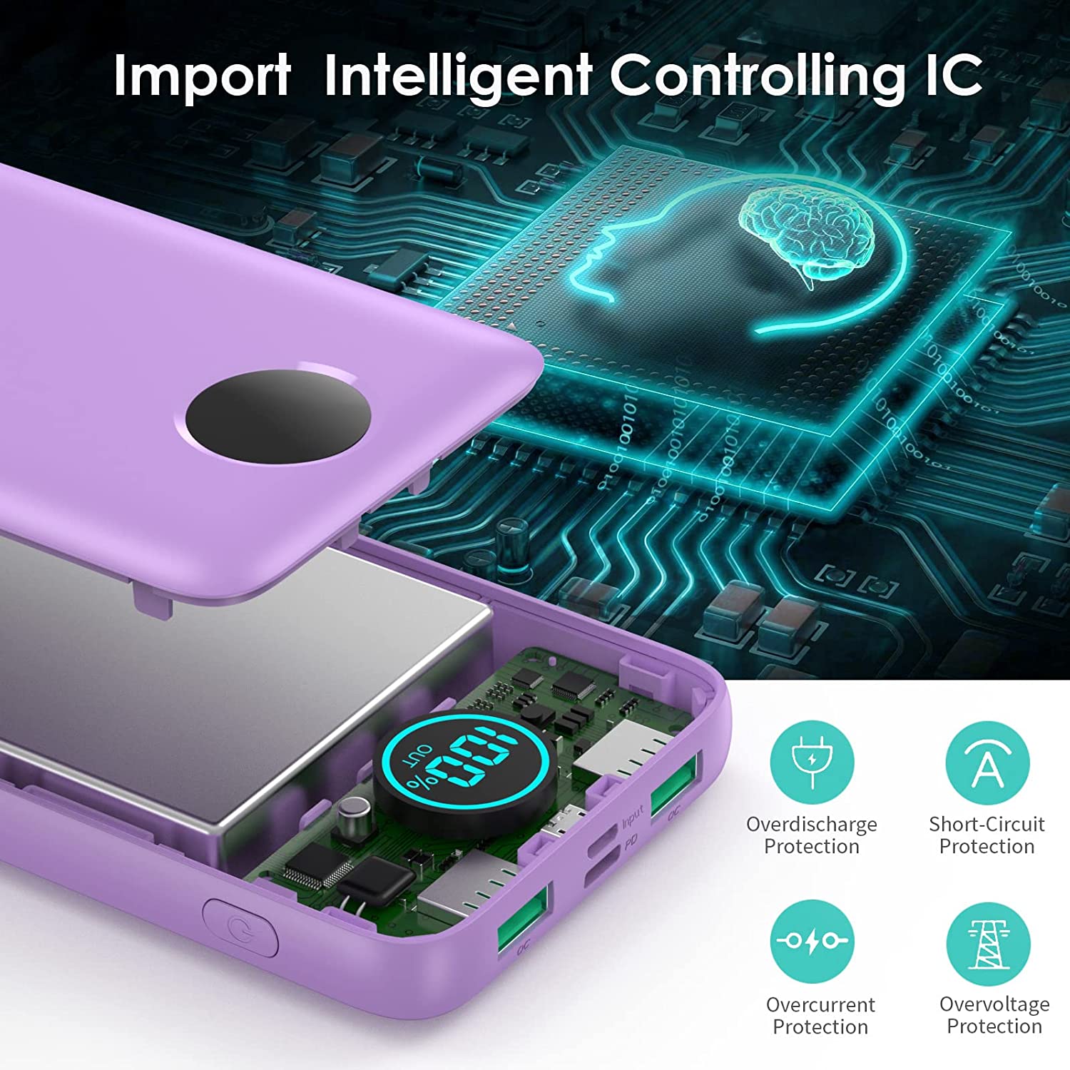 • 【Import Intelligent Controlling IC】 The portable charger adopt Import Intelligent Controlling IC to prevent power bank overcharge, overvoltage, overcurrent and short circuit. [CE certified] make sure product quality is safer.