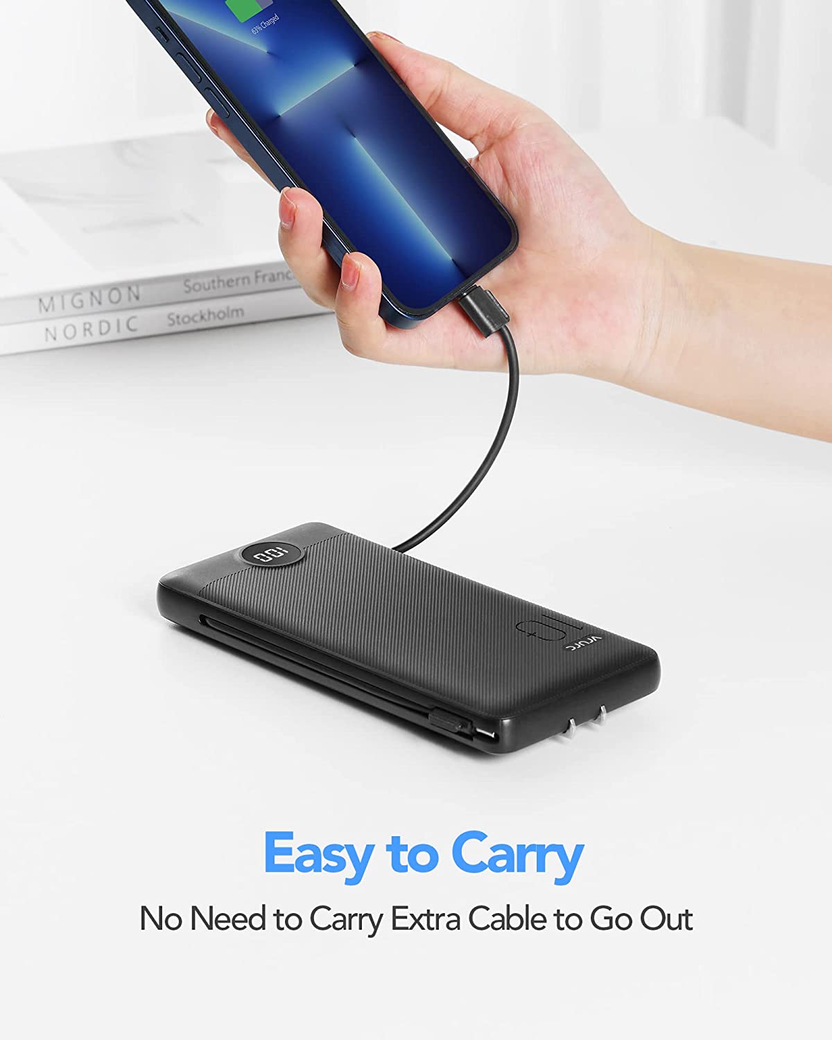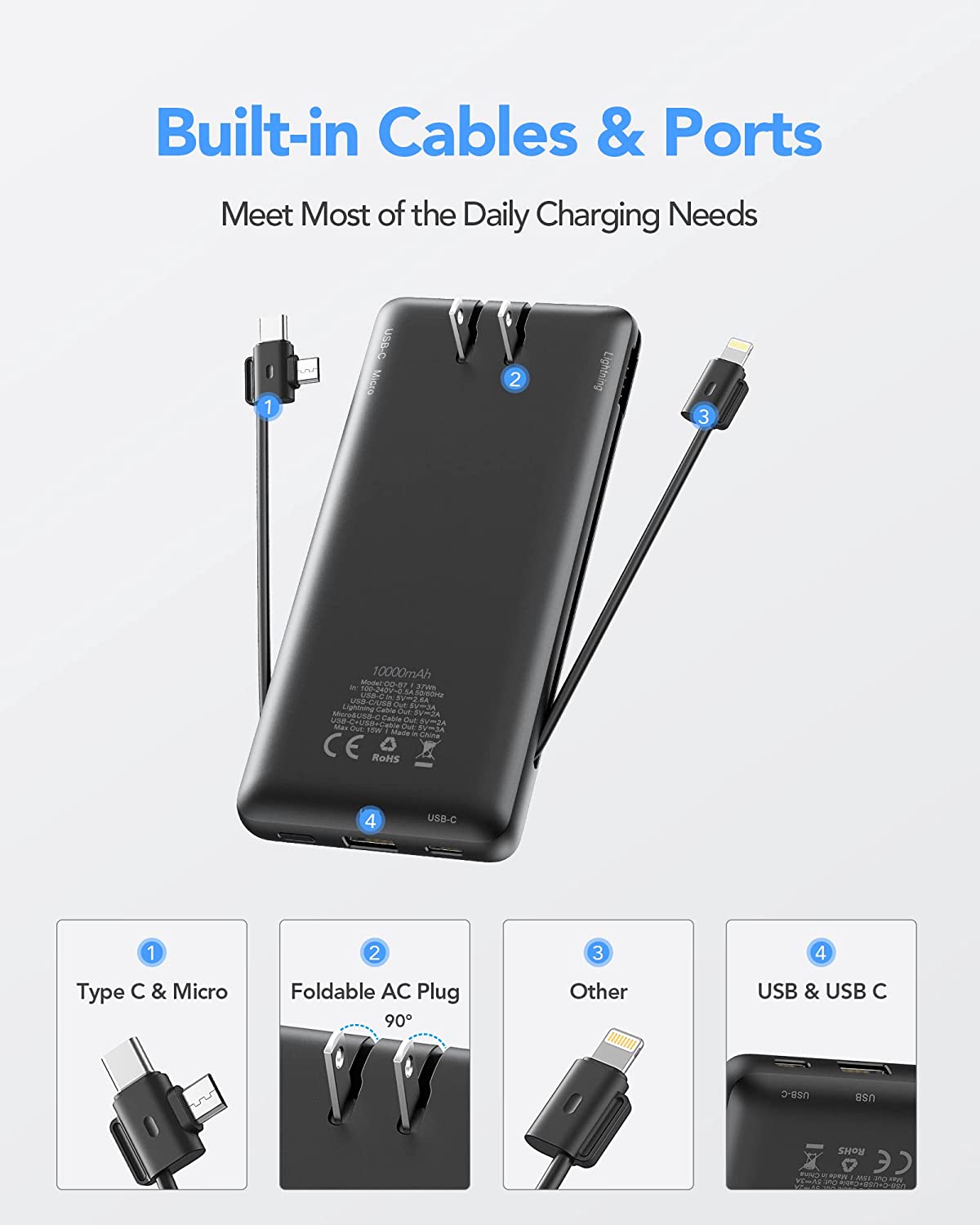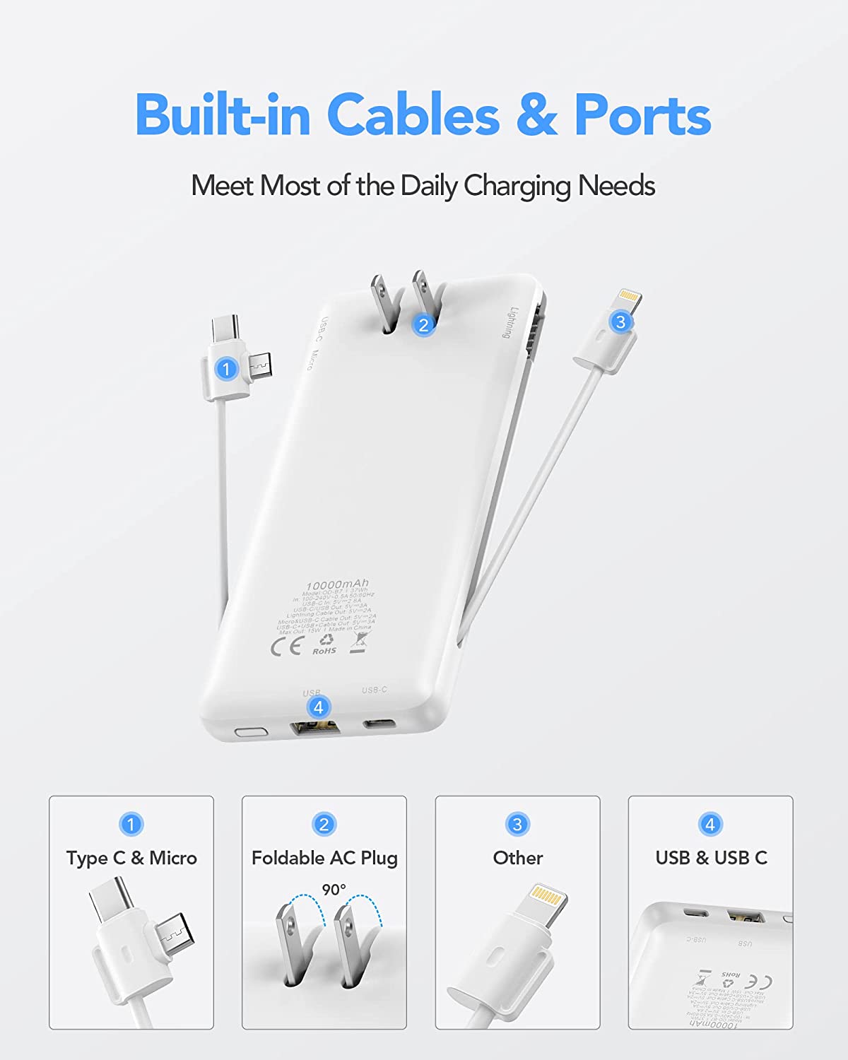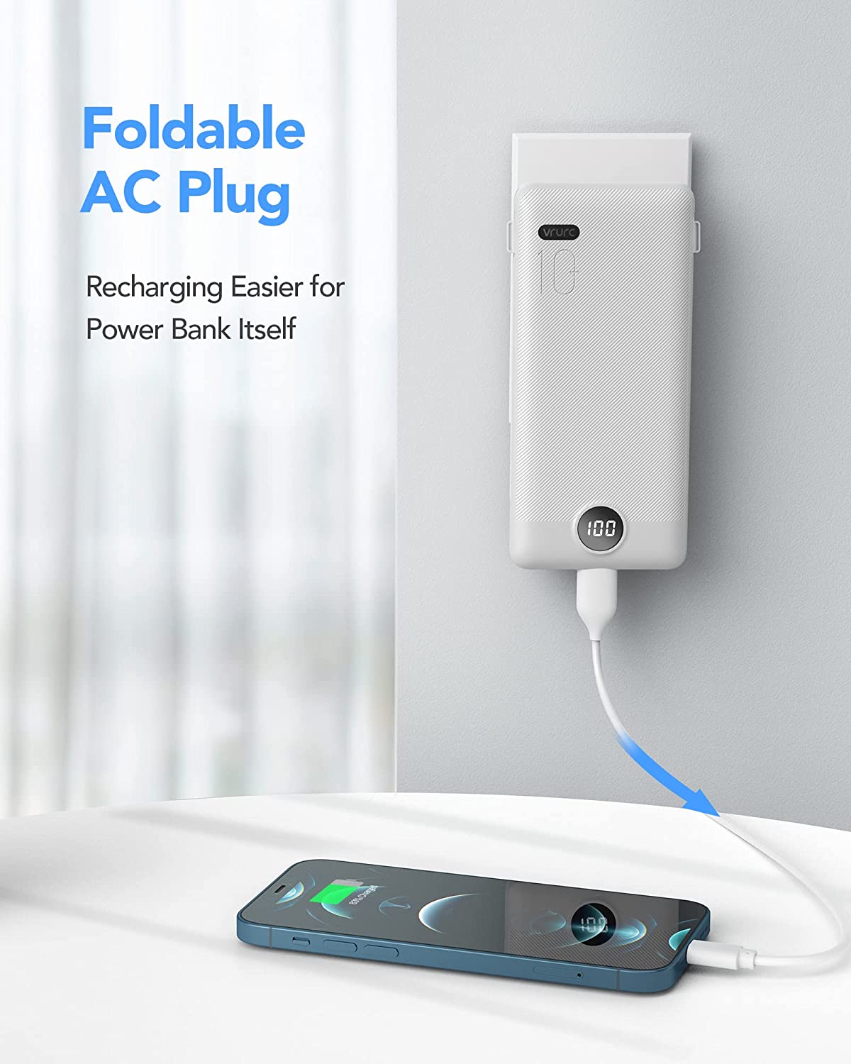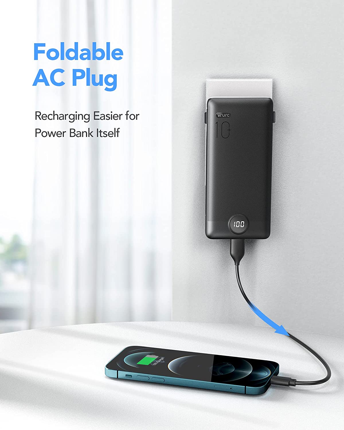 • [Portable Charger With Built-in AC Wall Plug] Portable phone charger with built-in AC Wall Plug can charge the power bank itself directly from the wall outlet. You don't worry about forgetting to carry your cable and adapter, It's ready for you all the time.