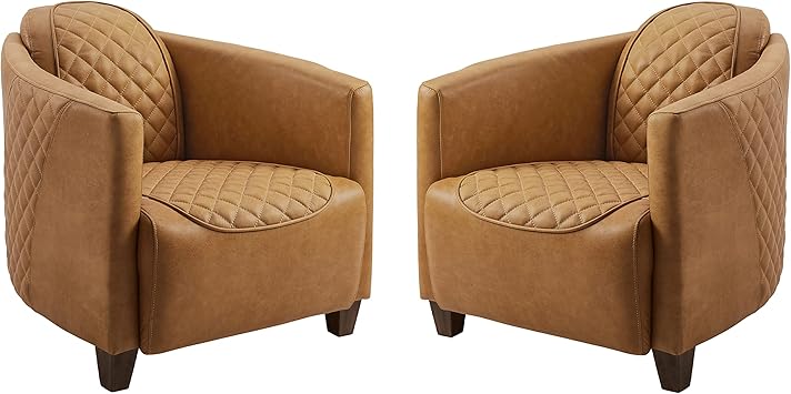 Art Leon Genuine Leather Accent Chair, Mid Century Modern Arm Chair, Club Barrel Chair with Wood Legs for Living Room, Set of 2, Light Brown