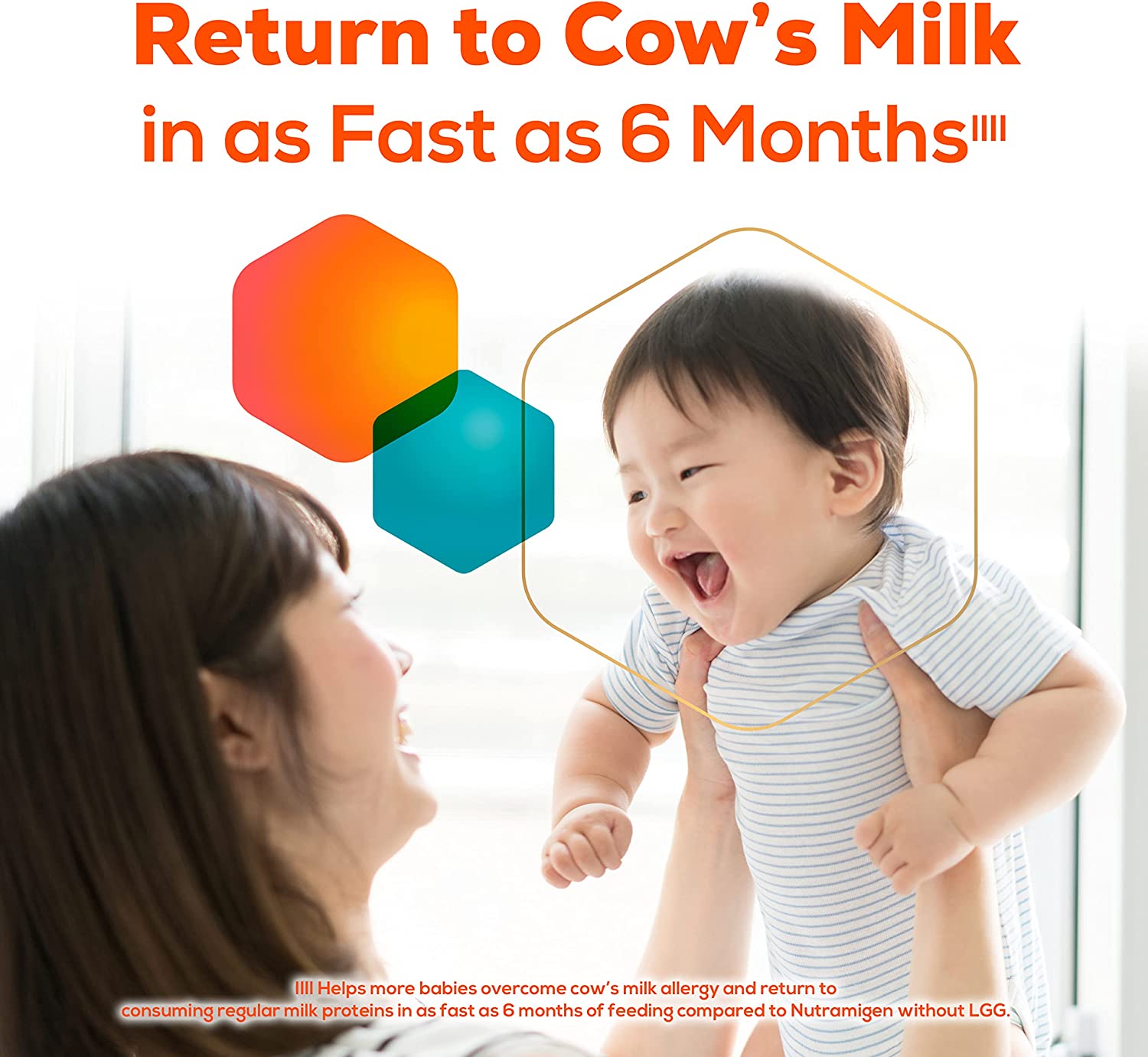 1. Manages cow's milk protein allergy with the Power of Two: extensively broken-down protein to reduce allergen exposure and the probiotic LGG to help the strength of the intestinal barrier