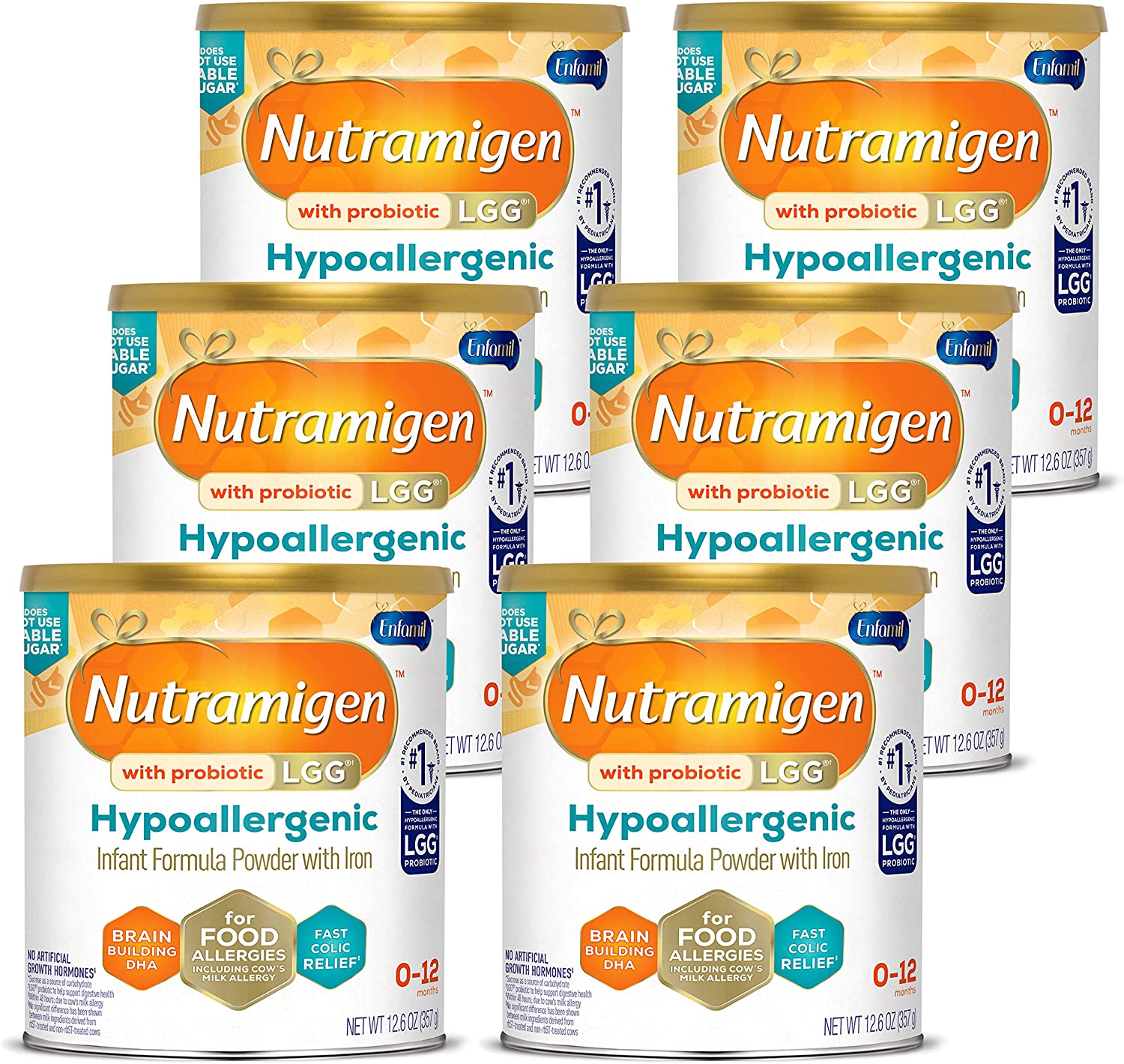 Enfamil Nutramigen Infant Formula, Hypoallergenic and Lactose Free Formula, Fast Relief from Severe Crying and Colic, DHA for Brain Support, Powder Can, 12.6 Oz (Pack of 6)