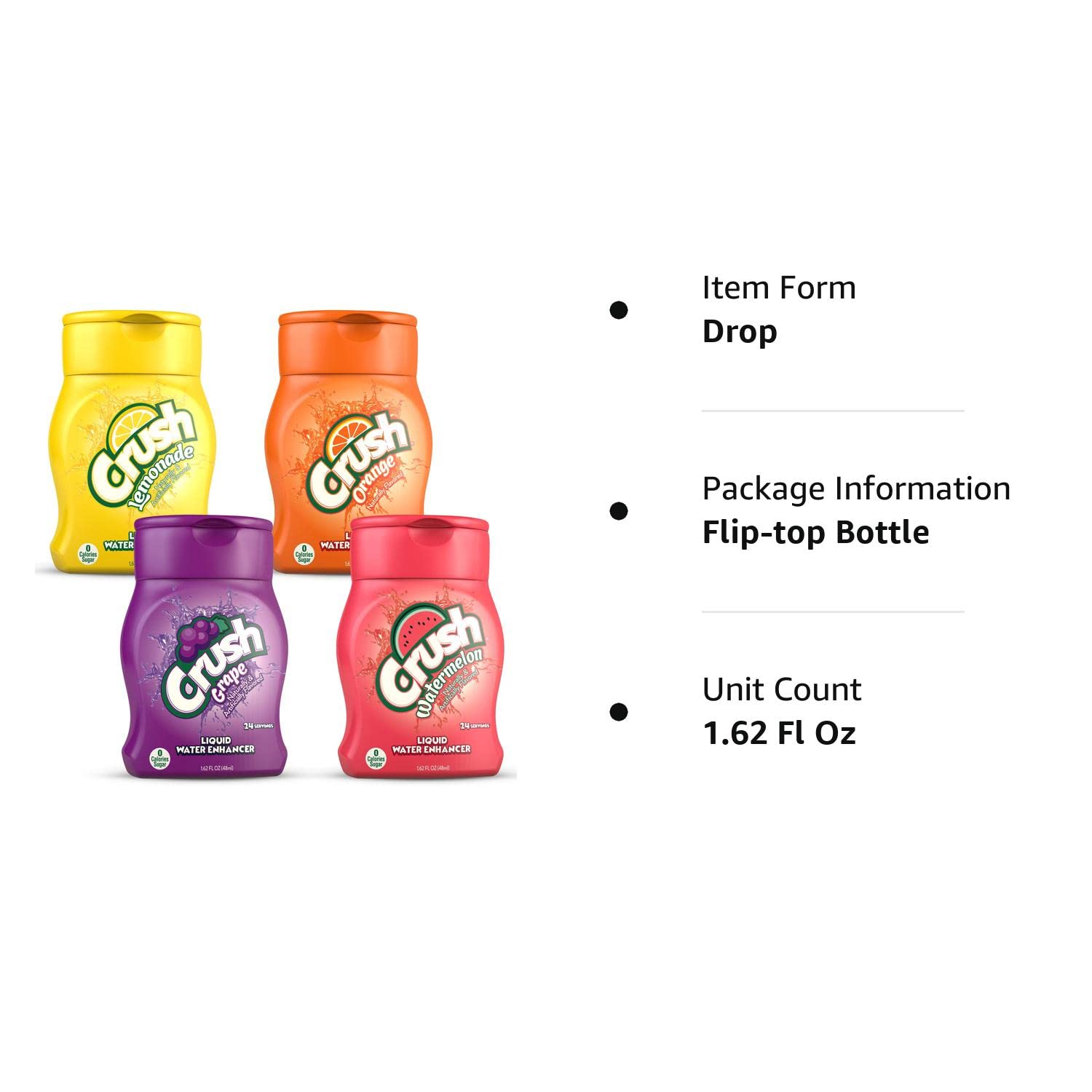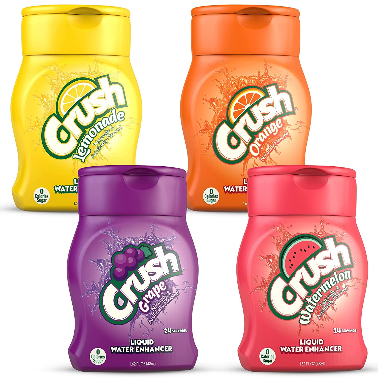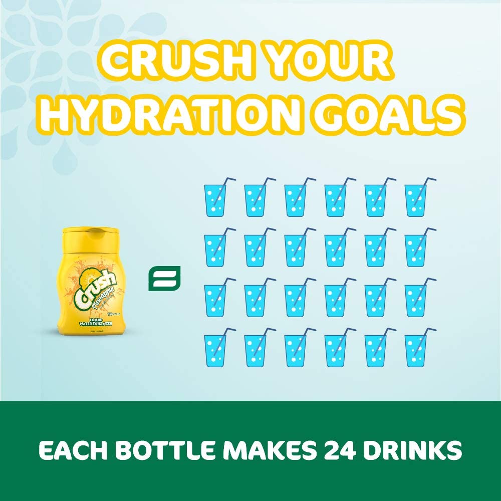 • EASY TO USE ON THE GO -- MAKES 96 DRINKS -- conveniently use Crush liquid drink mix at home, at work, on-the-go. Add as much flavor as you want and notice the great value compared to bottled drinks. Crush Liquid Drink Mix mixes instantly into water, unlike powder drink mix. Each bottle makes 24 eight-ounce drinks.