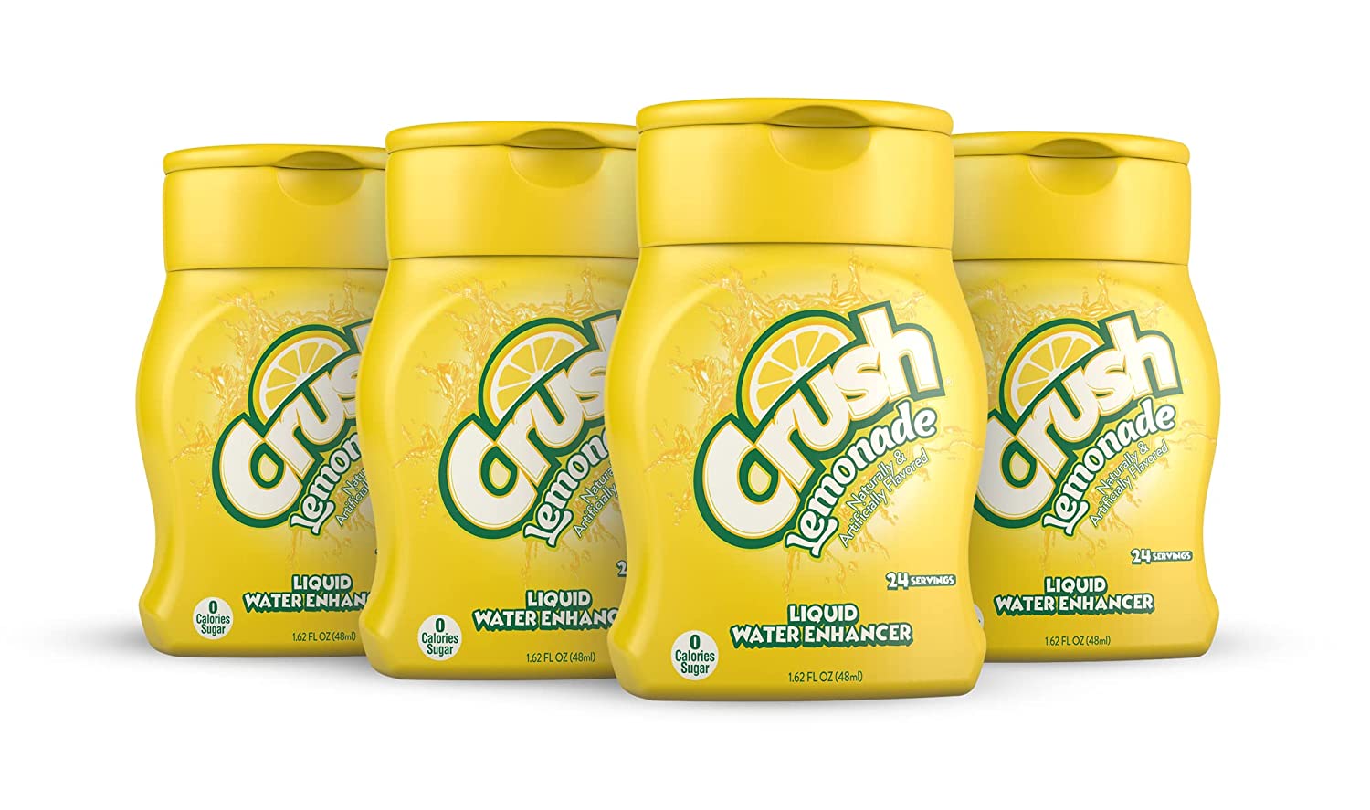 Available in a variety of delicious flavors, Crush water enhancers are the liquid drink mix for consumers looking for a fun way to flavor their water without the sugar. Easily make your own flavored water at home or on the go with these portable liquid drink mix bottles. To use, flip-open the cap. Point downwards directly into your water. And squeeze 1 second per serving in 8-ounces of water (squeeze longer to add more flavor)! Each portable bottle of Crush liquid drink mix makes 24 8-ounce drinks – with 0 sugar and 0 calories per serving. Use with your sodastream to make Crush flavored sodas. Or pack in your children’s lunch box to have them be the most popular kid at the lunch table. Crush drink mixes will have the whole family drinking 8+ glasses of water each day.