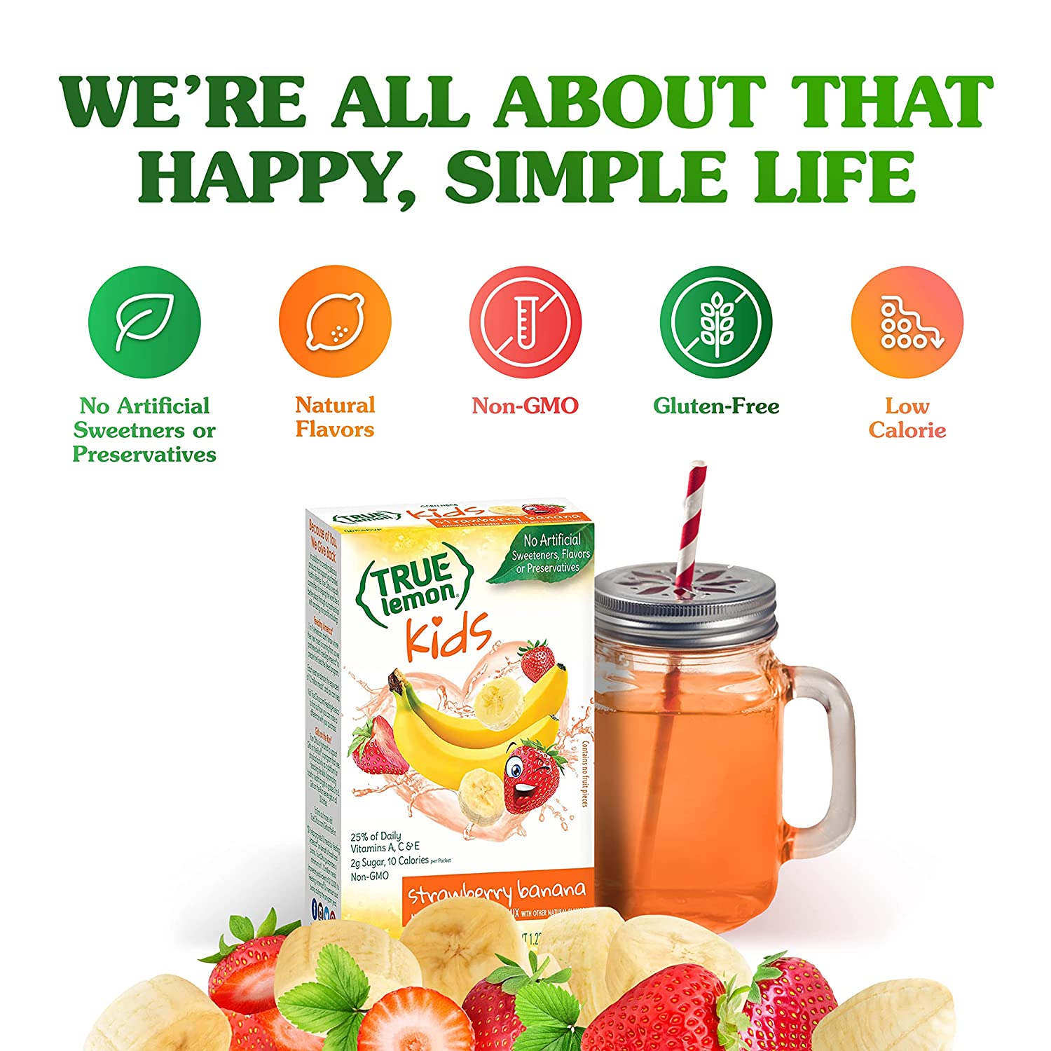 About True Lemon: True Lemon was created based on the foundational principle that tasting is believing. With no artificial sweeteners, preservatives or flavors and the taste of delicious flavors, you and your children will love True Lemon Kids. Individual packets make it easy to take on the go, pack in school lunches, or have delicious juice for kids wherever you go! True Lemon Kids is a great cost effective solution to keeping your children healthy and hydrated, compared to other leading kid’s drinks! About True Lemon Kids: Approved by parents and kids alike, True Lemon Kids is delicious, low sugar and packed full of vitamins! With 5 yummy flavors, these kids drinks are made with simple, Non-GMO ingredients and are FREE FROM artificial sweeteners, flavors and preservatives and colors made in a lab. (True Lemon Kids uses colors from natural sources like fruits and vegetables.) And, with 25% of your child’s vitamins A, C and E daily requirements, your kids can stay hydrated while getting the nutrients they need! 100% Happiness Guarantee You deserve the best and our team at True Lemon is committed to providing you just that - delicious and refreshing products you can trust to be a part of your healthy, happy and true life! That's why we offer a 100% happiness guarantee on all our drink mixes.