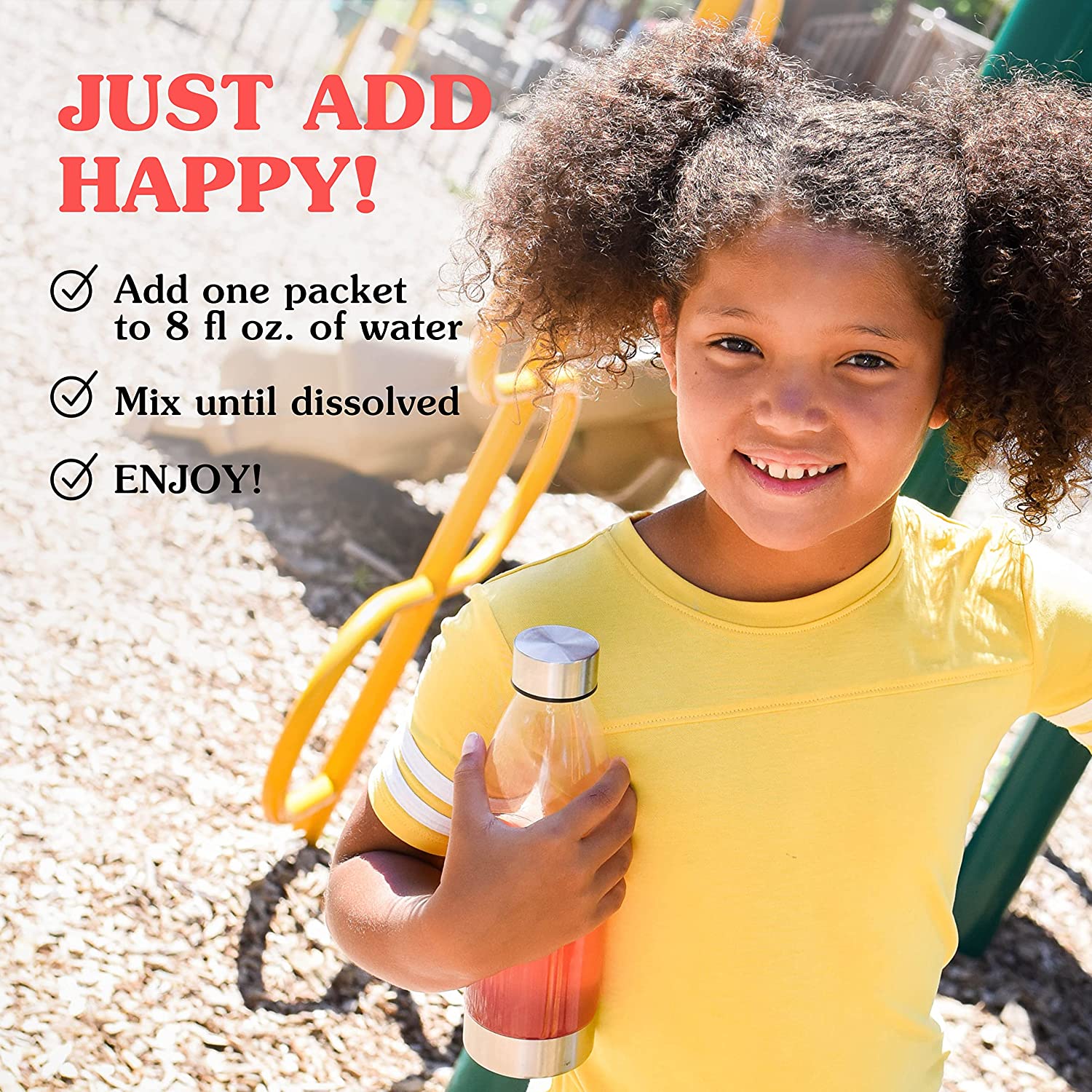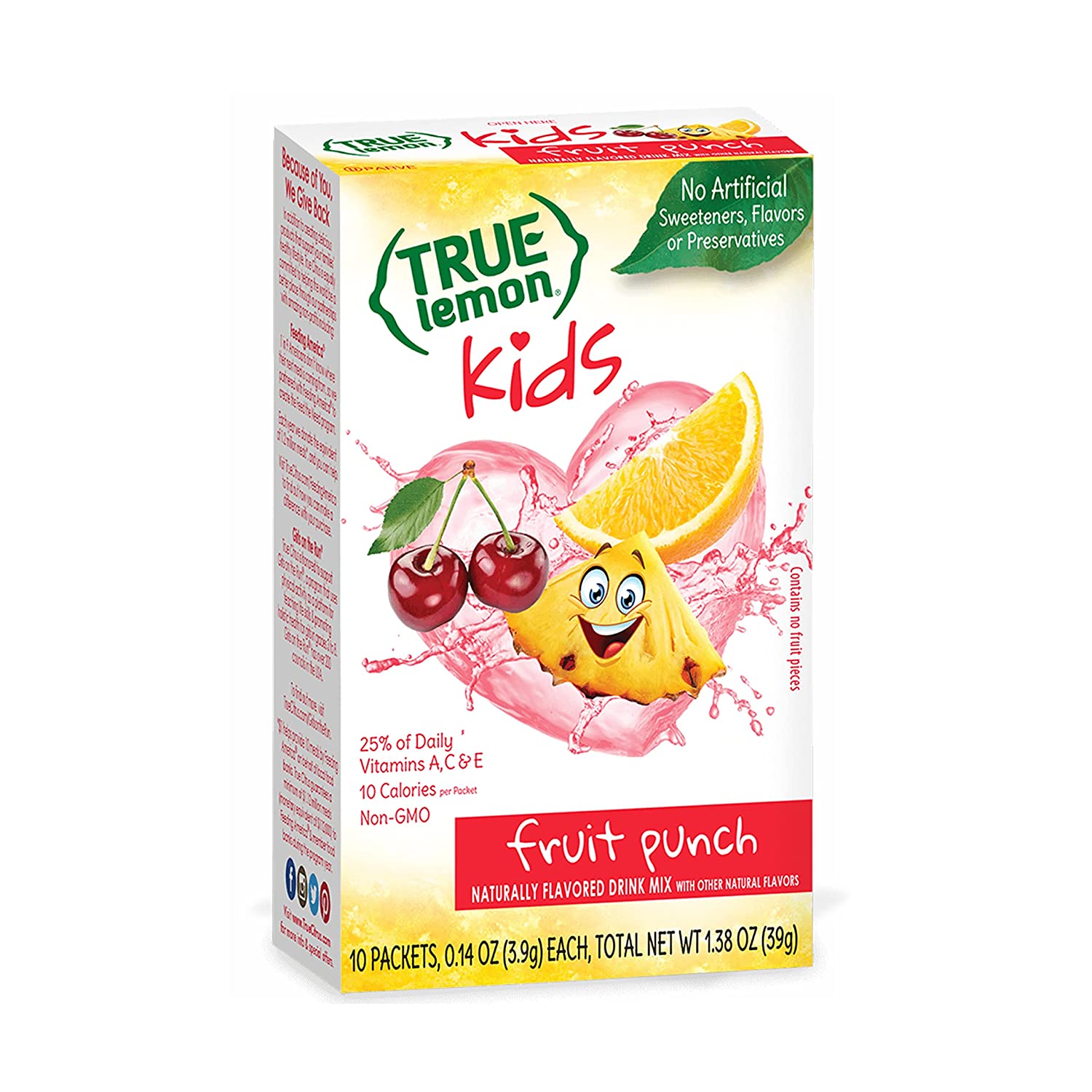 • JUST ADD HAPPY: 10 single-serve drink packets make it easy to take True Lemon Kids Fruit Punch wherever your children go! Each packet flavors 8 ounces of water so they’re great to take to the park, school, and more! Add 1 packet to 8 ounces of water, shake and enjoy!