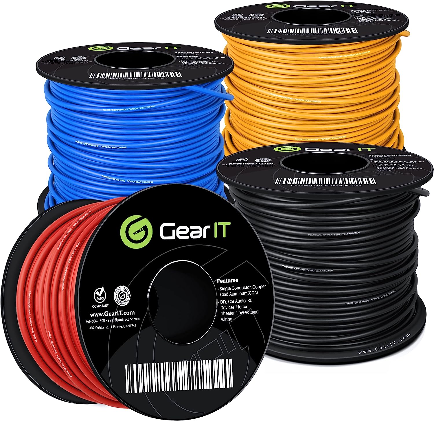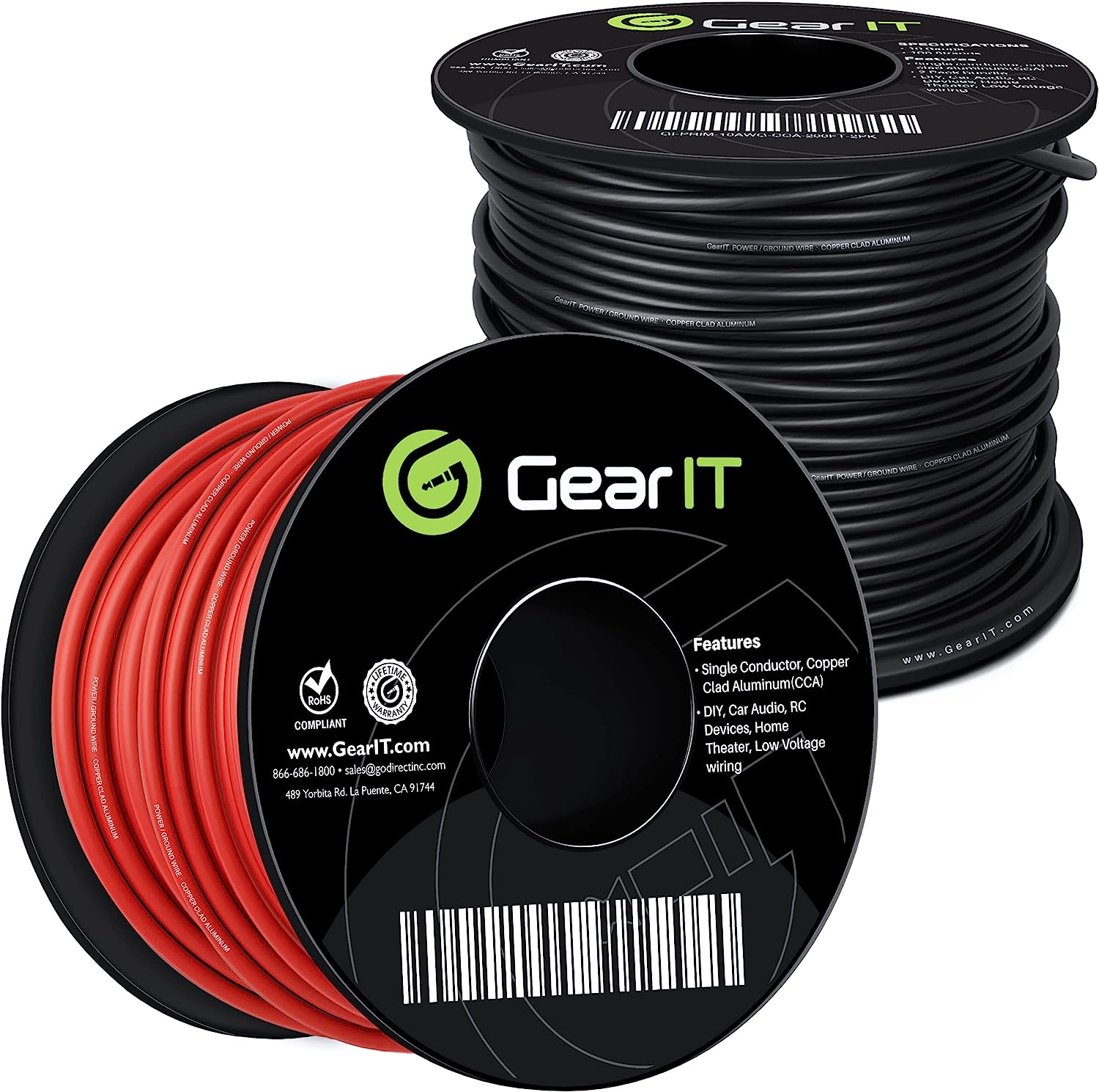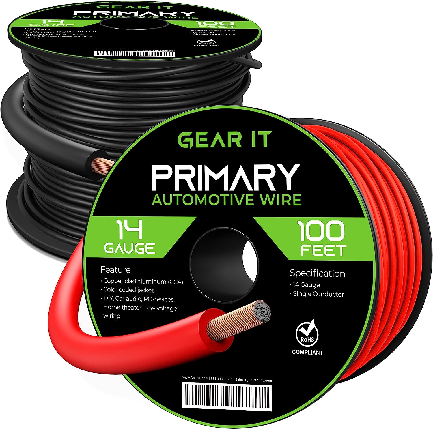 GearIT 14 Gauge Wire (100ft Each - Black/Red) Copper Clad Aluminum CCA - Primary Automotive Power/Ground for Battery Cable, Car Audio, Trailer Harness, Electrical - 200 Feet Total 14ga AWG Wire
