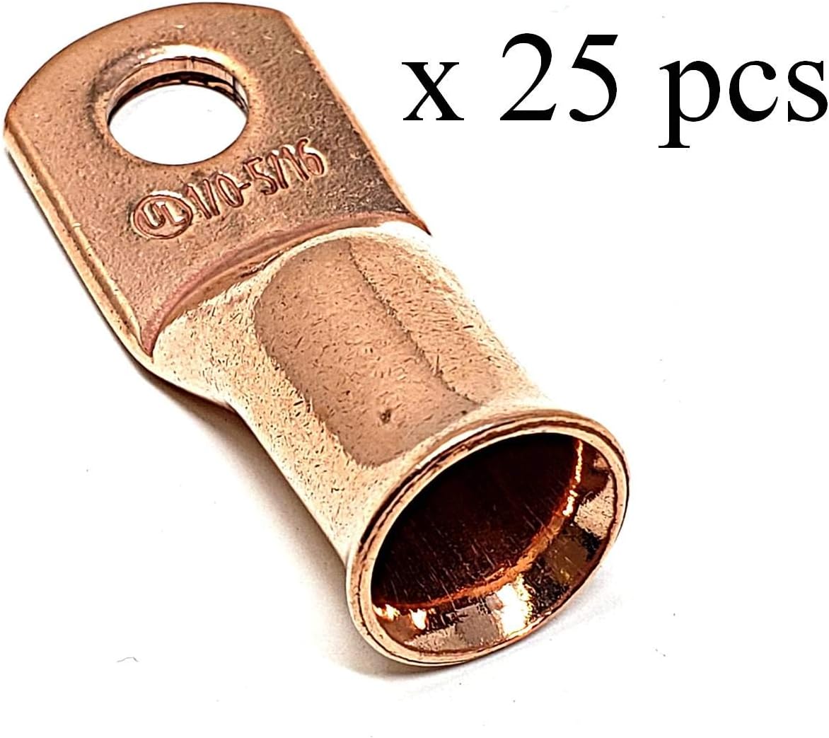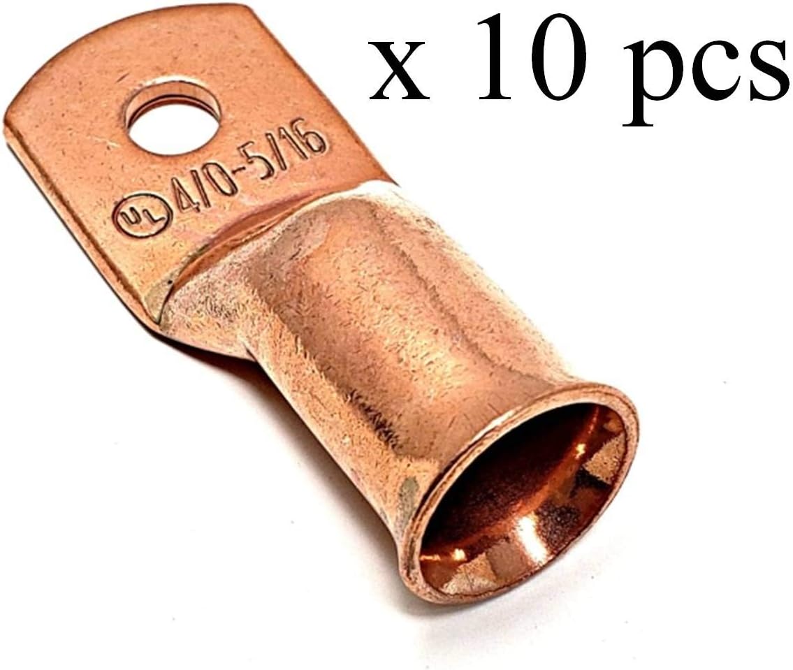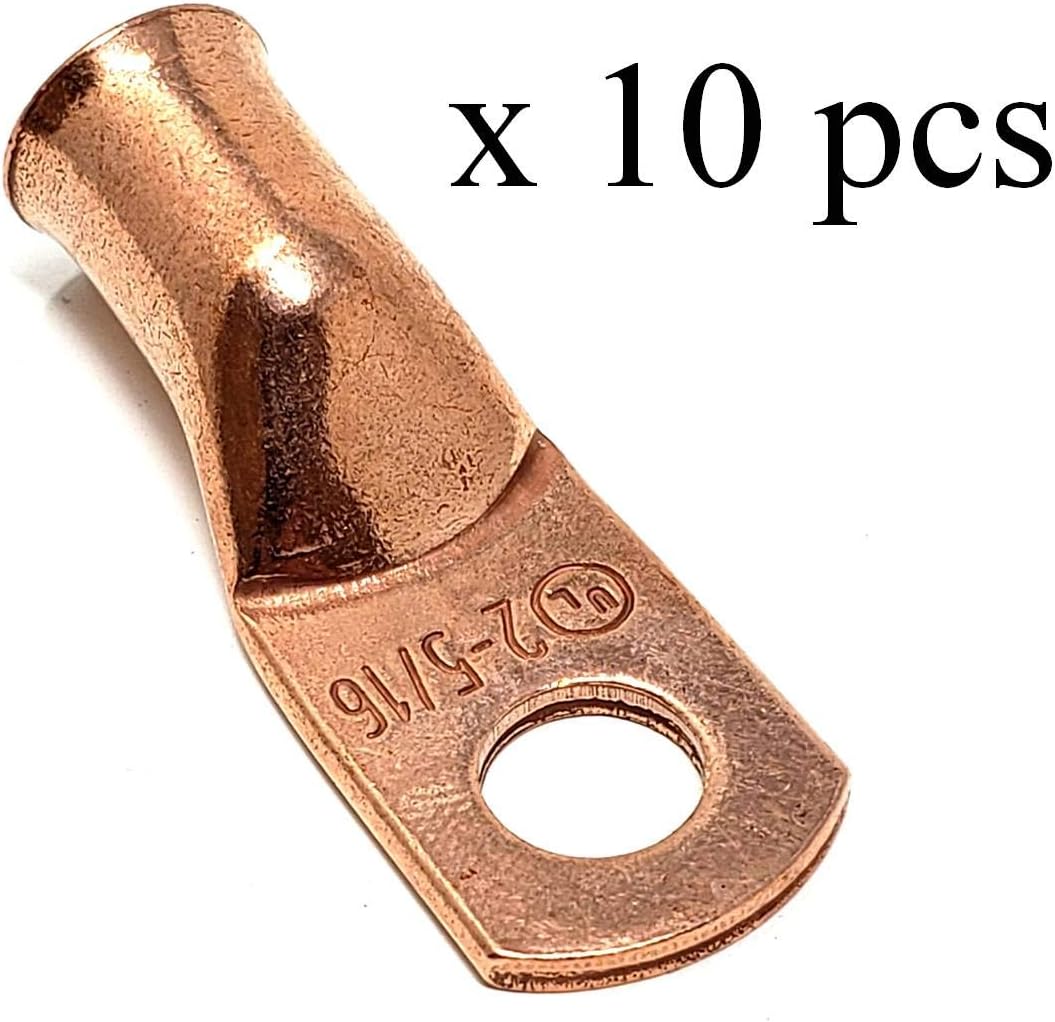 10 pcs WNI 1/0 Gauge x 5/16 Pure Copper Battery Welding Cable Lug Connector Ring Terminals