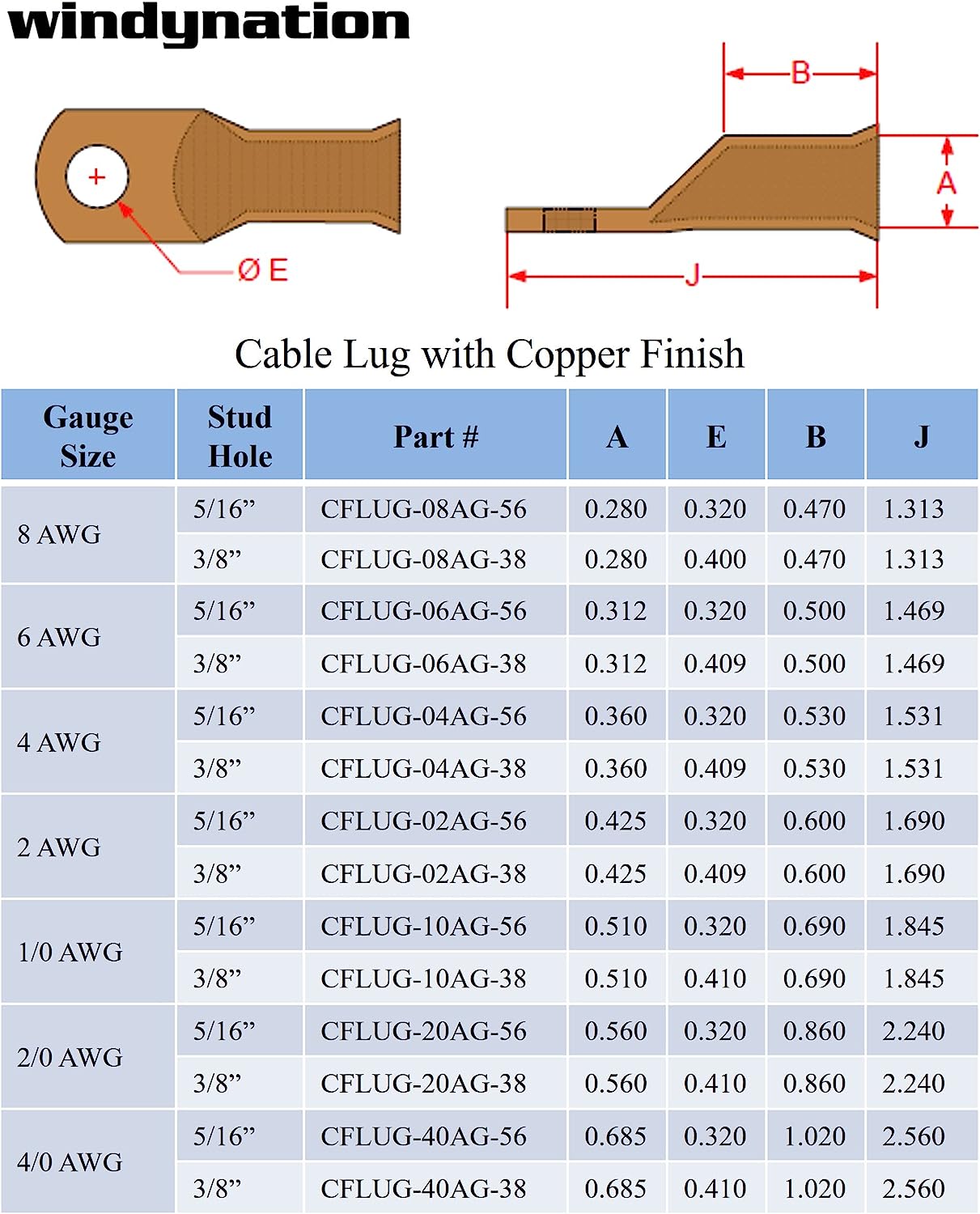 Size: 1/0 Gauge 3/8" Hole