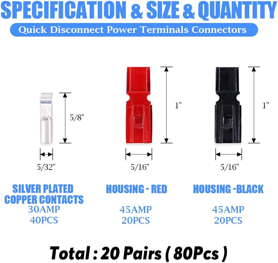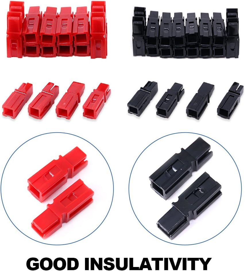 • ★ Black and Red Housing: The plugs feature color coded plastic housings which will mate together, up side down to each other, enabling the alignment of positive and negative cables.