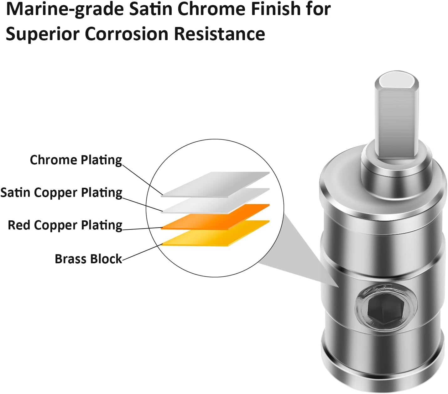 • Marine-grade Satin Chrome Finish for Superior Corrosion Resistance with hardened anodized steel set screw