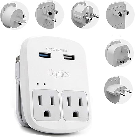 Ceptics Safest Travel Adapter Kit, Dual USB for iPhone, Chargers, Cell Phones, Laptop Perfect for Travelers - 3.6A with Qc. 3.0 Charge Faster