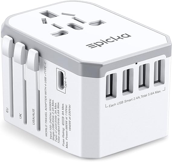 Universal Travel Power Adapter - EPICKA All in One Worldwide International Wall Charger AC Plug Adaptor with Smart Power USB for USA EU UK AUS Cell Phone Laptop (TA-105, White)