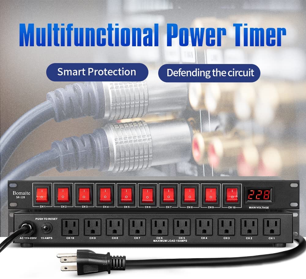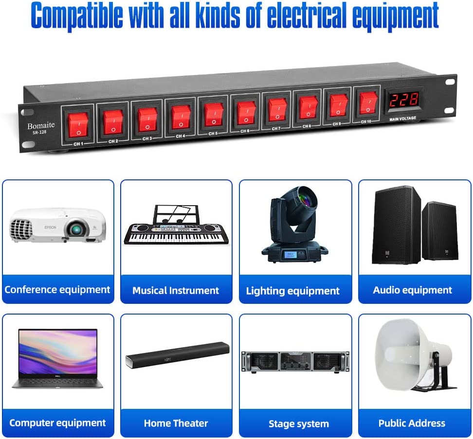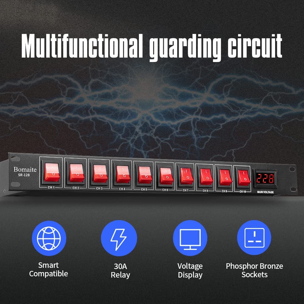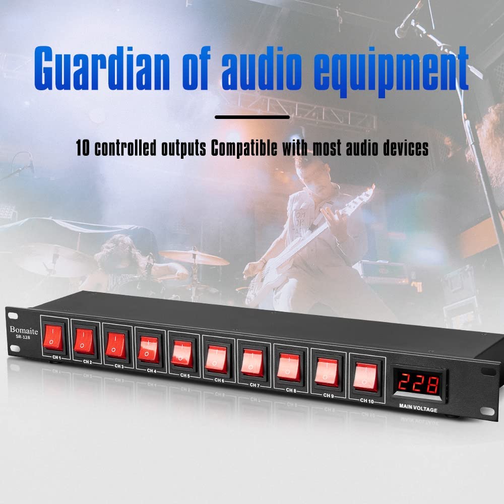 Bomaite SR-128 10 Outlet Power Sequencer Conditioner - 15A 1800W AC power Rack Mount Switch Conditioner, Pro Audio Digital Power Supply Surge Protector For Home Electrical Appliance,Computer Component