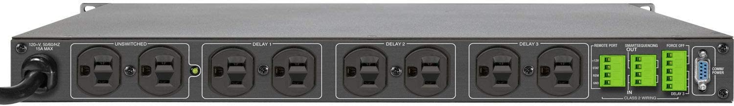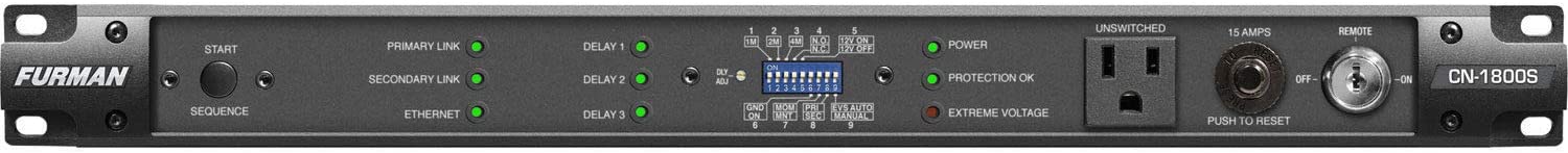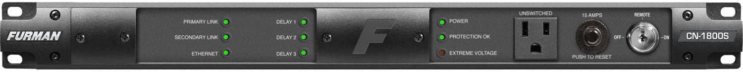 Designed for Commercial A/V Installers, the CN-1800S combines robust control capabilities via SmartSequencing Technology, advanced AC protection, AC noise filtration, and optional compatibility with the BlueBOLT Remote Power and Energy Management Platform (BB-RS232 adapter required, sold separately).The new CN-1800S is one of the first products to feature Furman s SmartSequencing technology, which allows large and complex A/V systems to be safely powered on and off with a simple press of a button or turn of a key, even by nontechnical personnel. SmartSequencing s bidirectional communications between installed units enables a primary unit to control and sequence multiple secondary units, ensuring multizone electronic systems are powered on and off safely and dependably from a single control point across an entire installation. Units can be connected via current loop at runs of more than 1,000 feet with backwards compatibility with Furman s legacy sequencers.In addition, the CN-1800S offers robust control options, equipped with RS-232 ports and command sets for integration with control systems. An optional RS-232-to-Ethernet adaptor (sold separately) adds full IP-addressability to the unit, allowing it to be controlled, programmed, and monitored from a smartphone, tablet, PC, or any Web-enabled device via Telnet, direct HTTP: connection, or Panamax/Furman s BlueBOLT -hosted remote power and energy management platform. Features at a Glance Surge Protection - Series Multi-Stage Protection (SMP) Technology provides the highest level of surge spike protection available.Noise Filtration - Linear Filtration Technology (LiFT) reduces AC noise linearly across a very wide bandwidth for unequaled audio video clarity.Voltage Protection - Extreme Voltage Shutdown (EVS) circuity safely powers down itself and connected equipment during unsafe voltage periods.SmartSequencing - SmartSequencing allows bidirectional, safe sequenced power up/down operations via the push of a bu