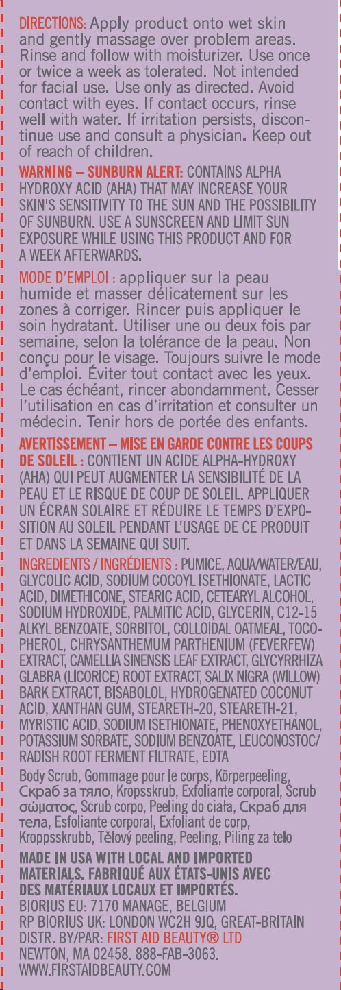 First Aid Beauty KP Bump Eraser Body Scrub Exfoliant for Keratosis Pilaris with 10% AHA – 8 oz