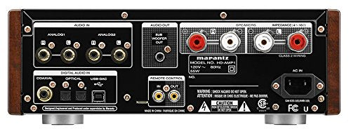 Housed in an elegant compact chassis that occupies just over 1 square foot of desktop or shelf space, the HD-AMP1 digital integrated amplifier features high resolution D/A conversion and compatibility with a wide range of uncompressed high resolution audio formats, including WAV, ALAC, FLAC and AIFF, and is also capable of decoding DSD tracks. The powerful digital amplifier section features cool-running wide bandwidth and wide dynamic range Class D audiophile amplifier technology that is compatible with the widest range of speaker types and impedances. Equipped with Marantz Current Feedback and HDAM technologies the HD-AMP1 ensures utmost audio fidelity and clean playback with minimal distortion while driving both easy and difficult loads. One of the new additions to Marantz MusicLink series, this amplifier brings to the listener all the emotion and musical detail of the original sound studio, combined with an elegant appearance and luxuriant feel.