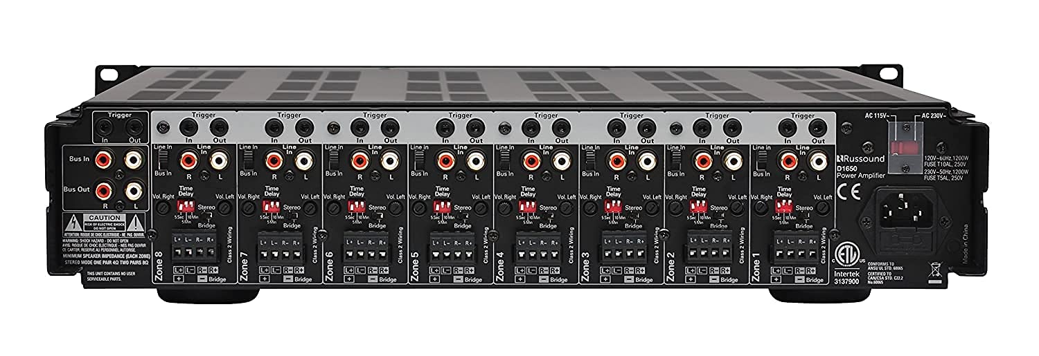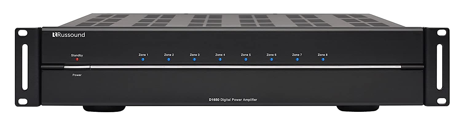 50W x 16 at 8 ohms (80W x 8 at 4 ohms), 160W Mono bridged per zone at 8 ohms), high efficiency, cool running, global bus input, independent inputs per zone, trim level adjustment per channel, global trigger input/ output, independent trigger input/ output per zone, audio sensing per zone, auto Switching delay settings per zone, rack mountable.