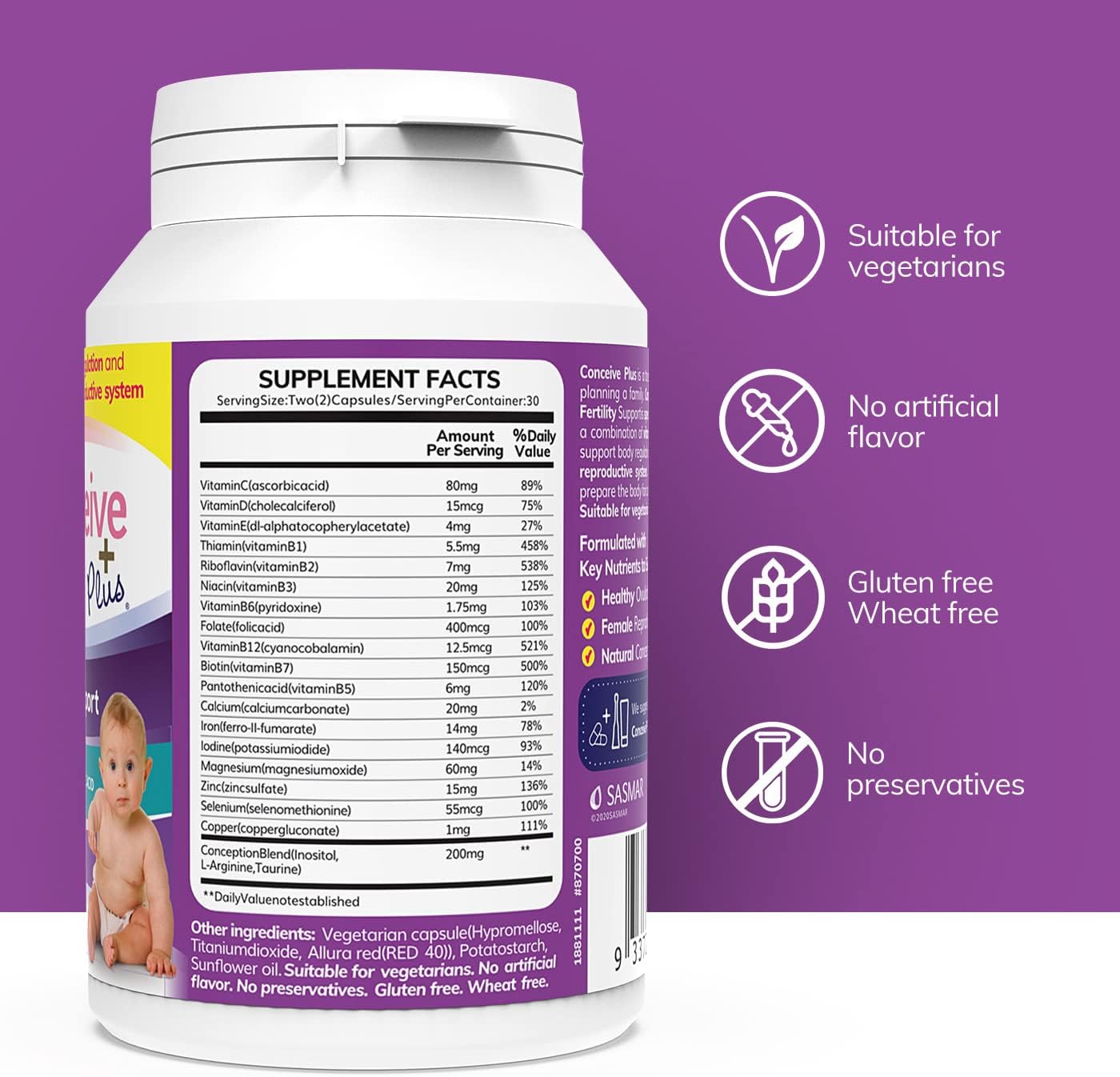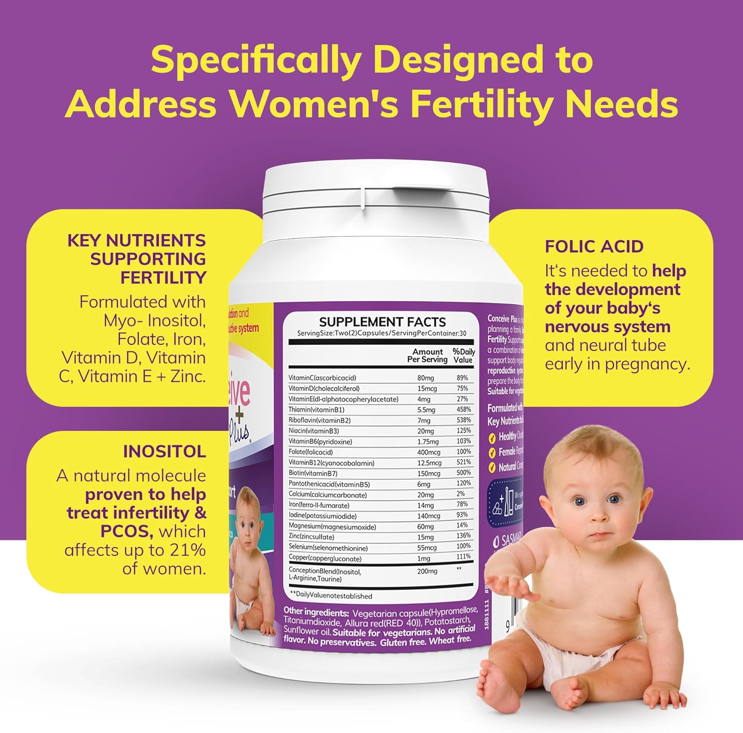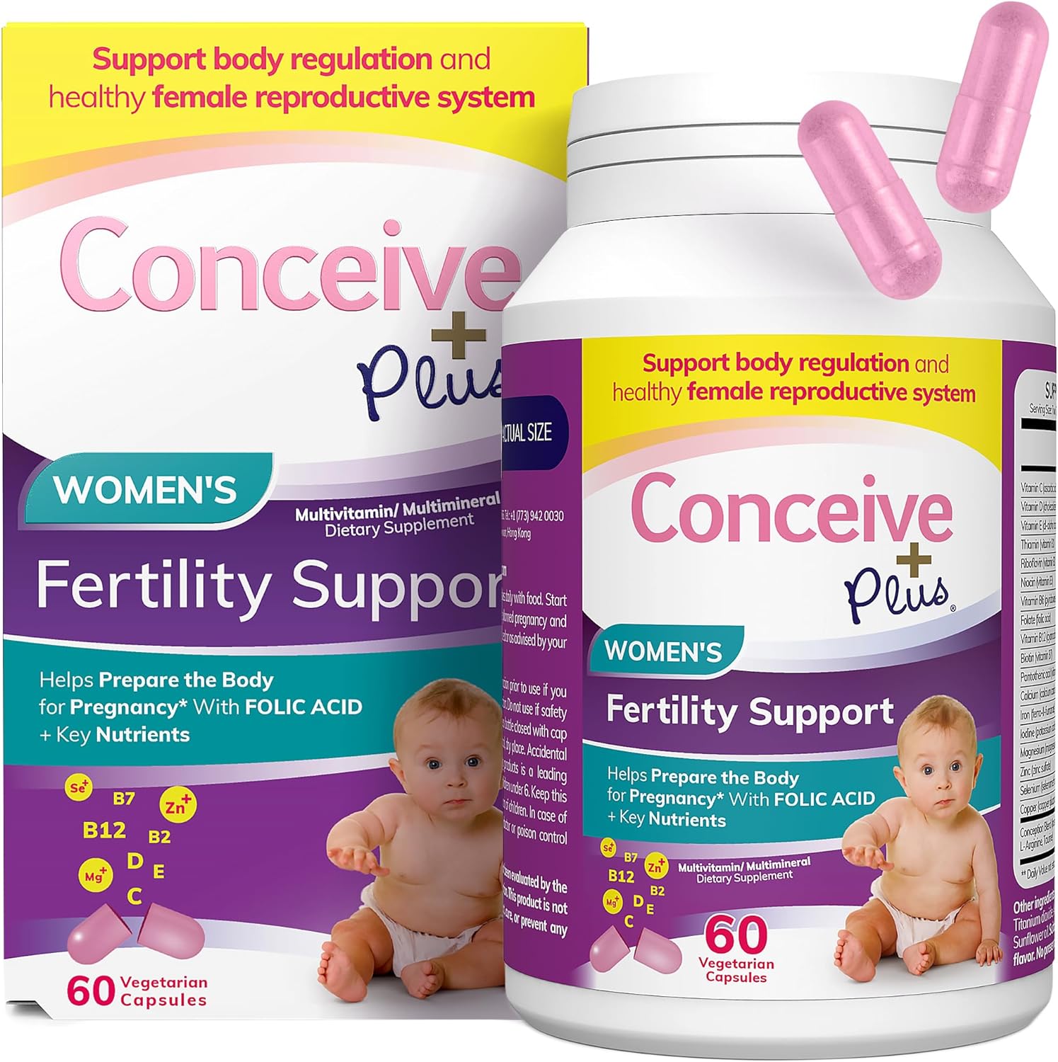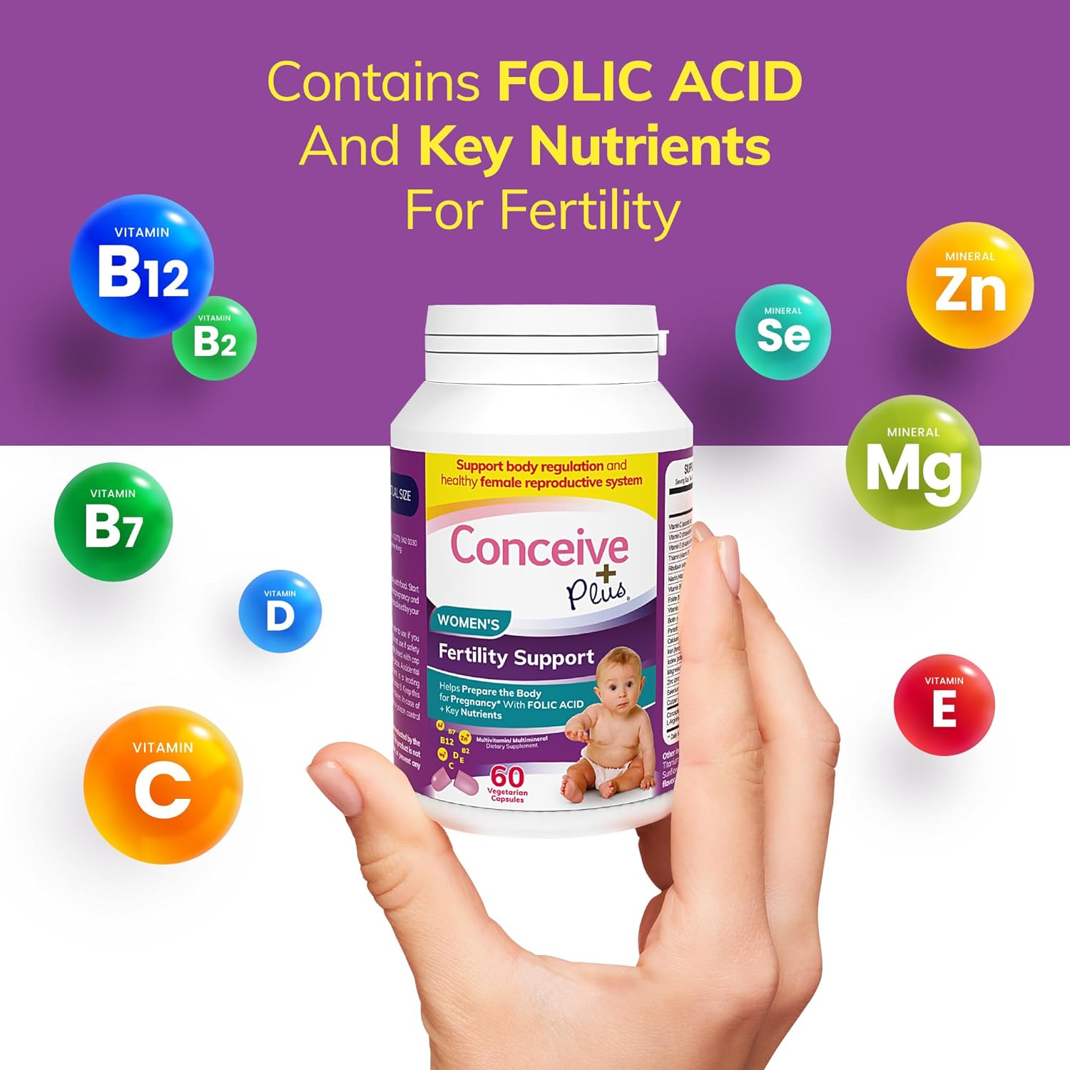 Conceive Plus Womens Fertility Support - Prenatal Vitamin with Vitamin C & D, Female Fertility Formula for Conception, 60 Capsules - 30 Day Supply
