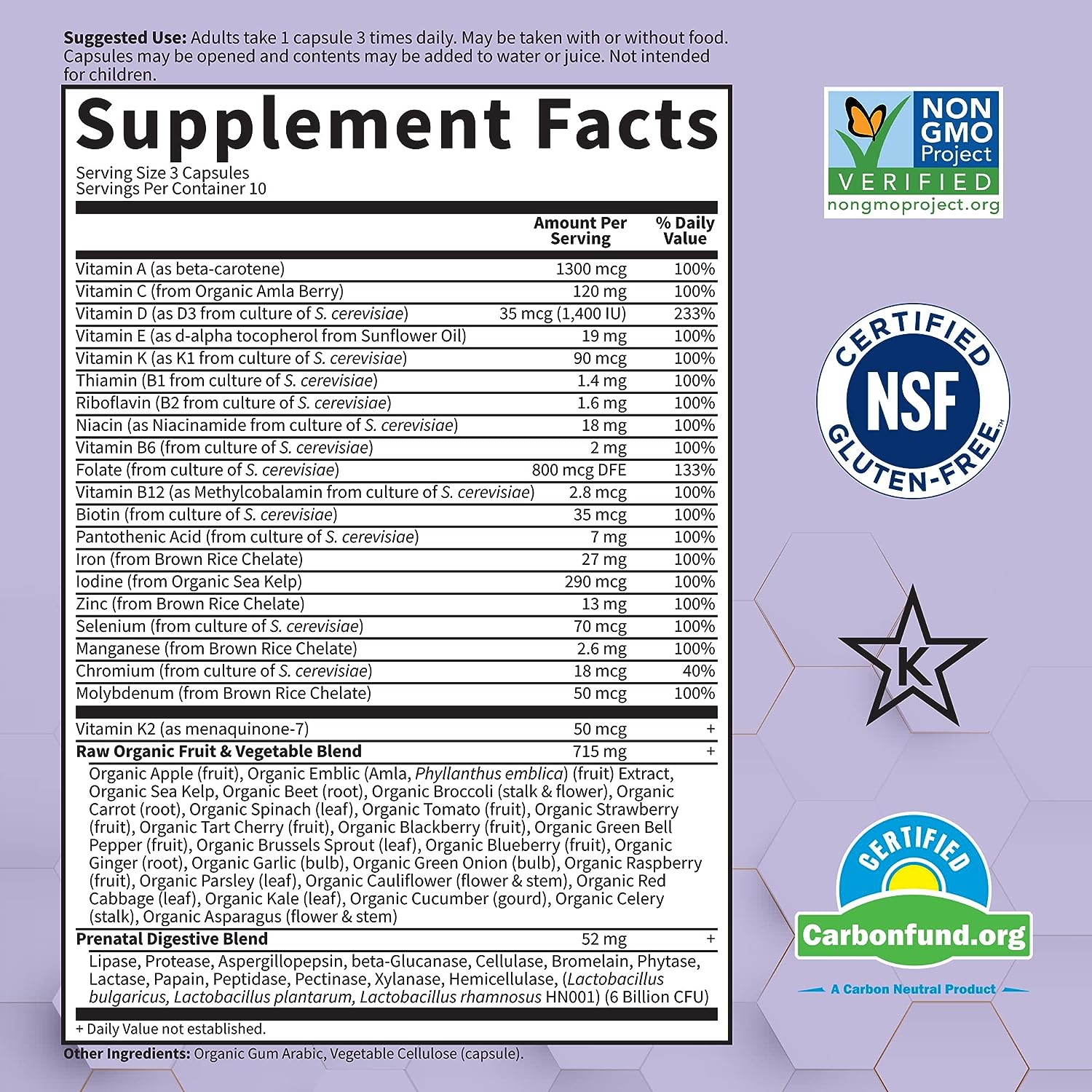 Vitamin Code supplements are delivered in a whole food base of fruits and vegetables. These supplements are raw, which not only means that they are produced with no high heat, but also means that these nutrients come with their natural cofactors, along with live probiotics and enzymes, just like raw foods! RAW Prenatal is specially formulated for preconception, pregnancy and lactation.† Three capsules daily promote healthy fetal development with over 100% DV of folate (800mcg) and 1,400 IU of whole food Vitamin D3.† Mom also gets energy support with 100% daily value of vitamins B6 and B12.† In addition to 27mg stomach-friendly iron for blood and reproductive health.† Vitamin Code capsules are vegetarian and made from vegetable cellulose. They can be easily opened and mixed with water or raw juice. Adults take 1 tablet 3 times daily with food. †These statements have not been evaluated by the Food and Drug Administration. This product is not intended to diagnose, treat, cure or prevent any disease.