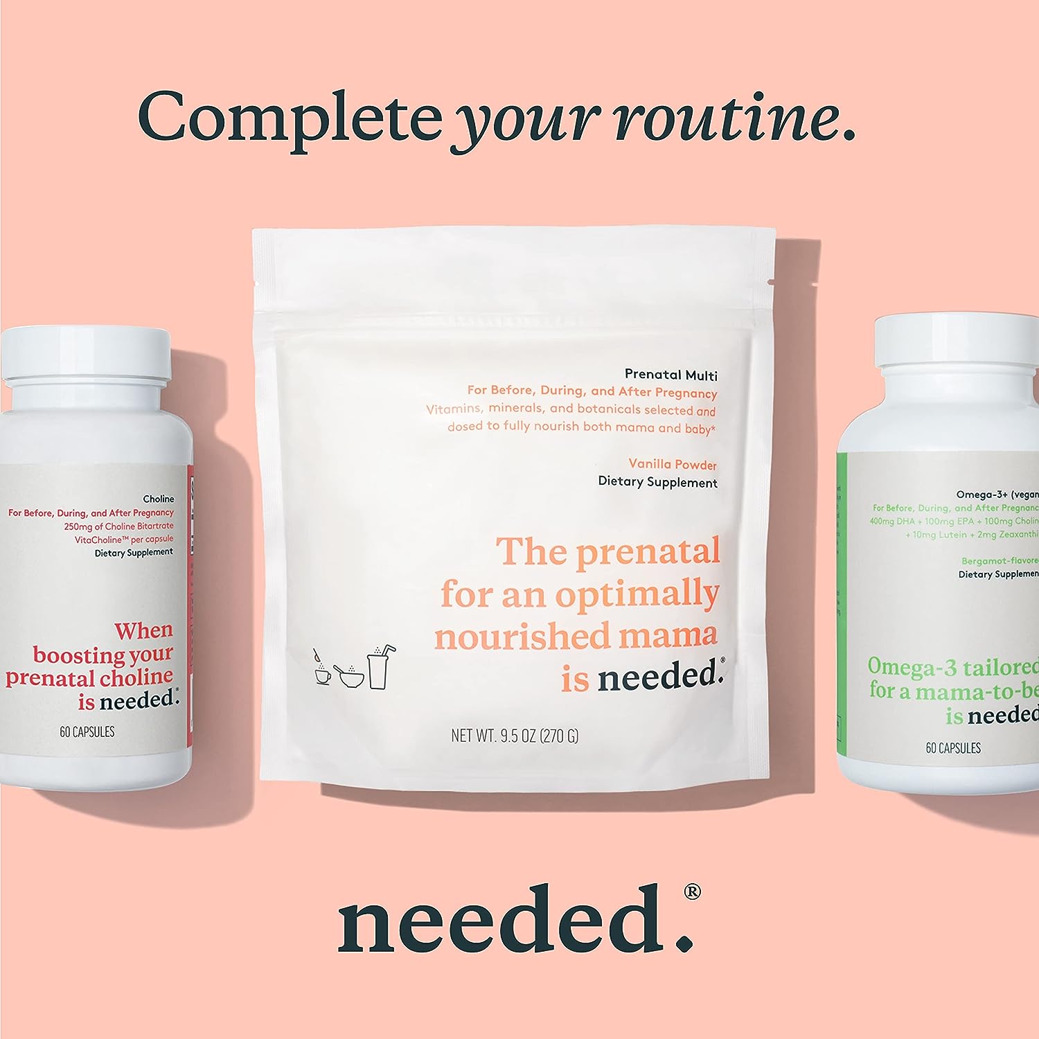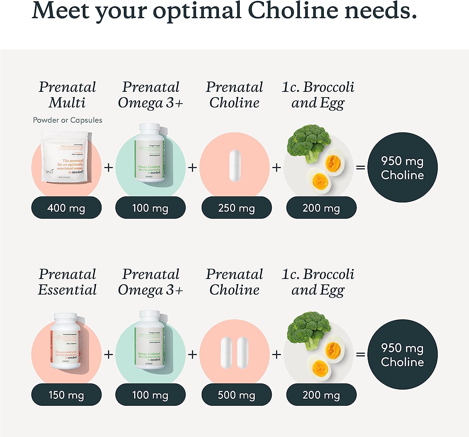 Needed Prenatal Choline - Optimal Prenatal Choline Add On, 250Mg Talc-free Vegan, Filler, Heavy Metals Free, Brain Development in Utero/Early Life, With VitaCholine, Non-GMO, Allergen Free 60 Capsules