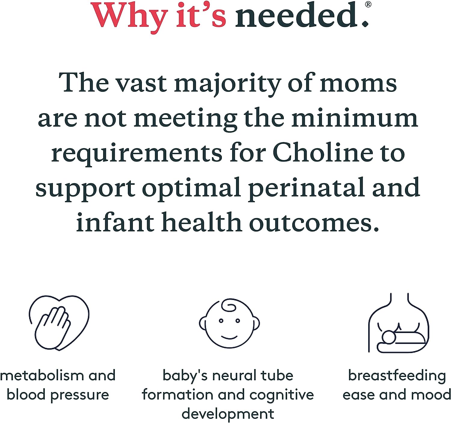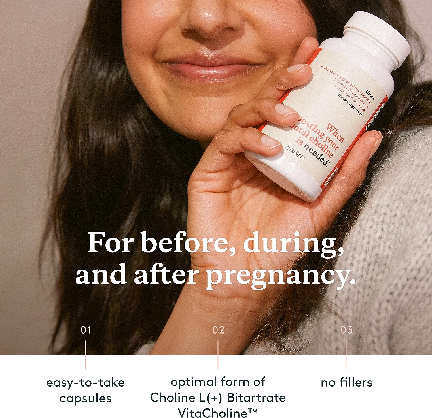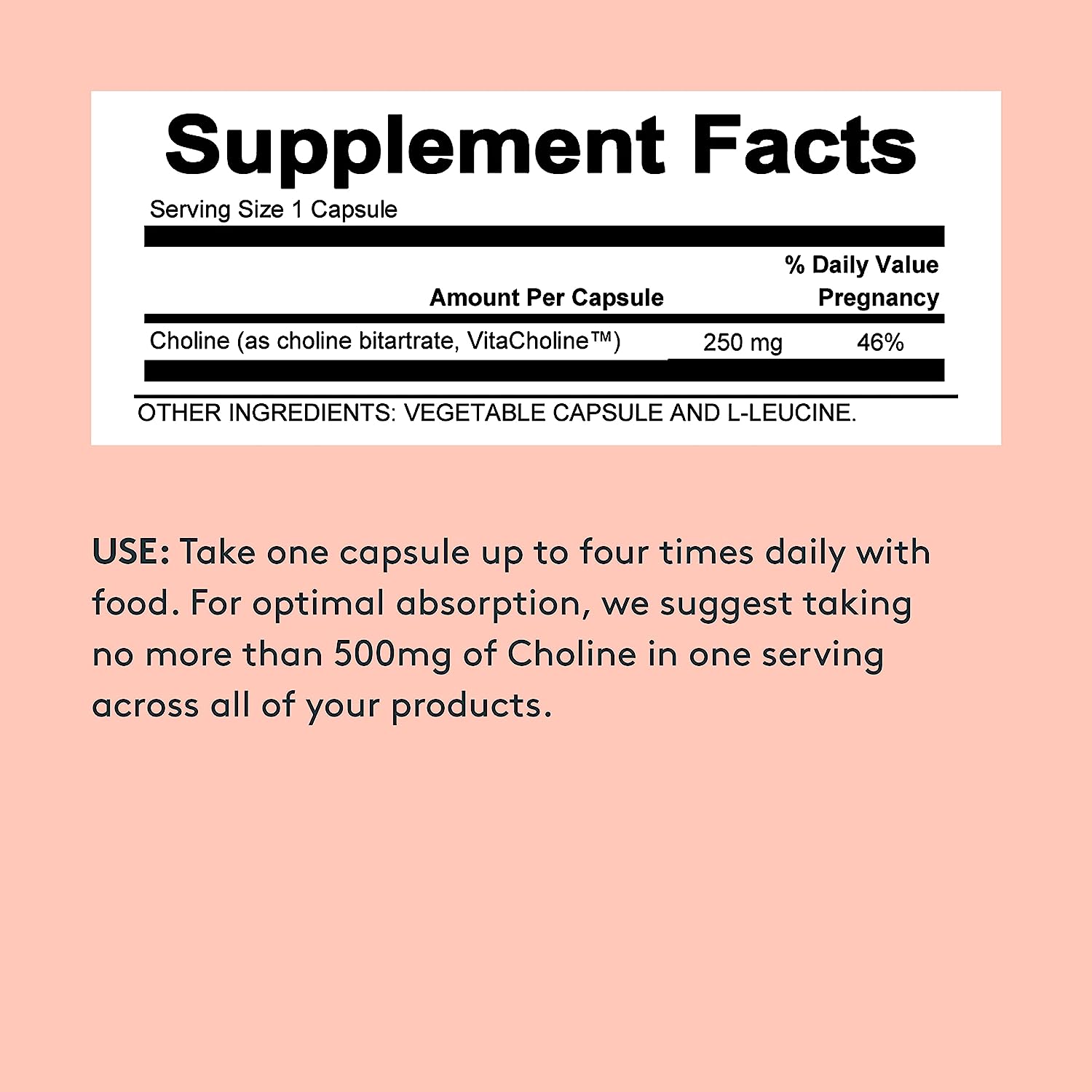 • Our Choline add-on is dosed at 250mg of Choline L(+) Bitartrate VitaCholine per capsule to help you reach optimal levels. Perfect for supporting baby’s neural tube formation and cognitive development.