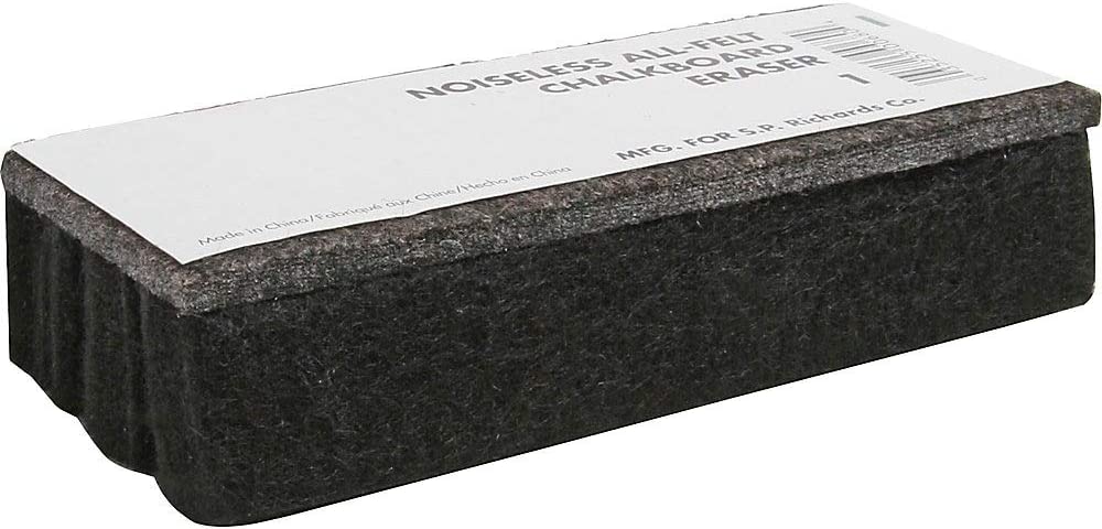 Get your chalkboard clean with this easy-to-hold, all-sewn chalkboard eraser. It is made of top-quality felt for effective erasing. Eraser is both noiseless and dustless.