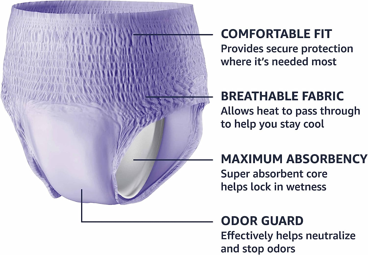 Amazon Basics Incontinence & Postpartum Underwear for Women, Maximum Absorbency, Large, 54 Count, 3 Packs of 18, Lavender (Previously Solimo)
