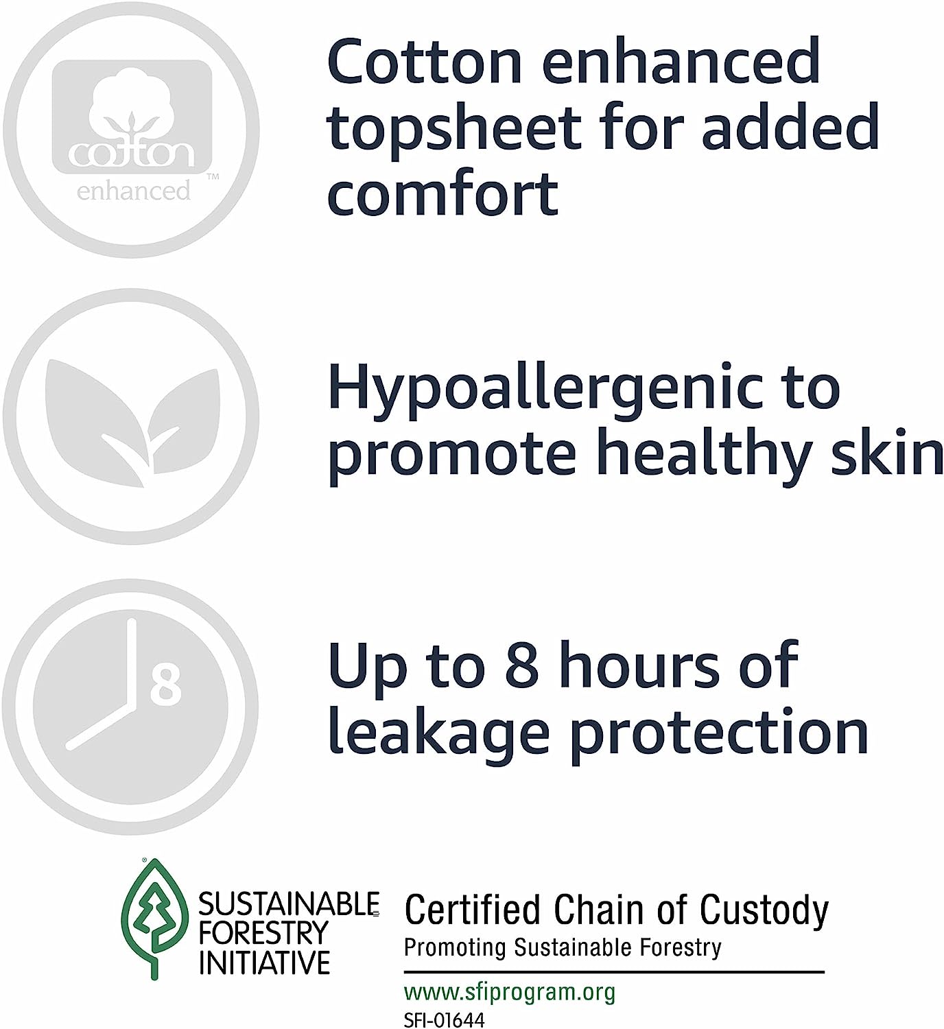 • Alexa voice shopping enabled: to place your next order, just say, “Alexa, add Amazon Basics Women’s Protective Underwear to my cart”