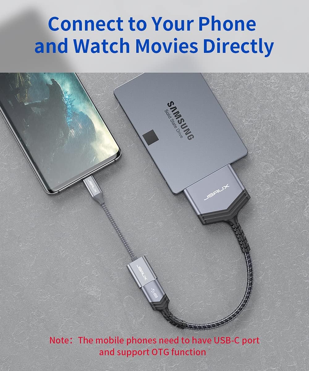 JSAUX SATA to USB A Cable, USB A 3.0 to 2.5” SATA III Hard Drive Adapter Aluminum Shell Nylon Cord External Converter for SSD/HDD Data Transfer-Grey