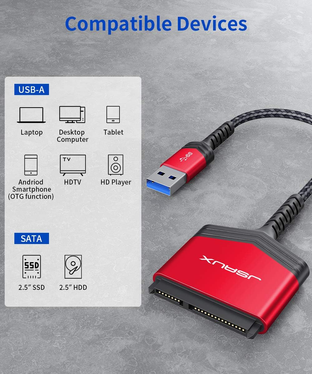• 【Quickly Access a SATA SSD or HDD】: Add drive space to your laptop by connecting to a SATA 2.5" SATA SSD or HDD using this SATA to USB cable. You can connect to an external drive to add storage, perform backups, create disk images, implement data recoveries, and transfer content to your laptop.