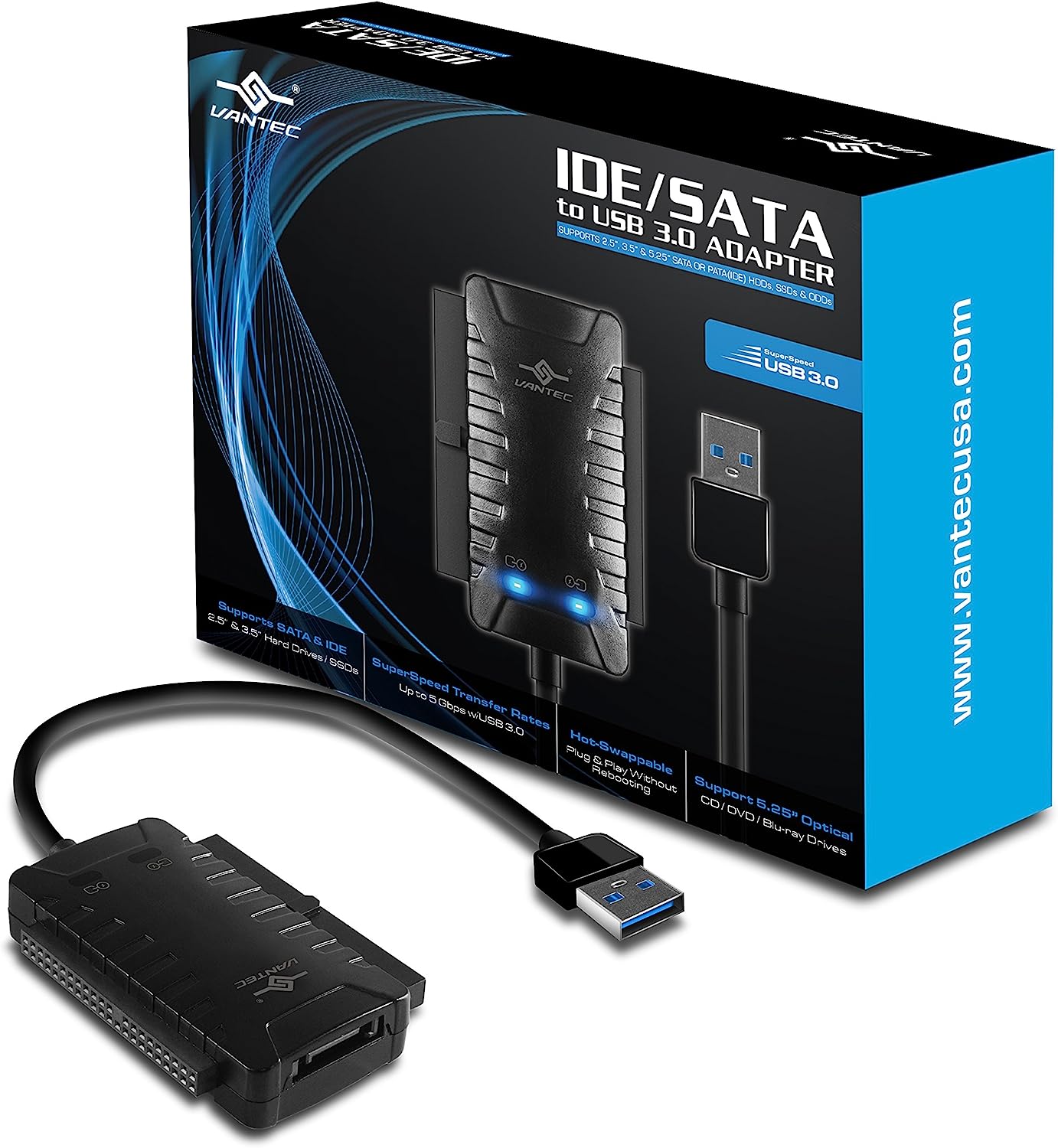 The NexStar IDE/SATA to USB 3.0 Adapter provides the flexibility of connectivity and hot-swap capability to your storage drives. This device ebles you to connect numerous storage drives like 2.5”, 3.5”, 5.25” SATA or IDE drives thru the latest Superspeed USB 3.0 connection. Whether your IDE/SATA hard drive is new or old, from a laptop or desktop; this adapter can read it all. The included exterl power adapter will allow you to power your drives outside your system giving you the ability to quickly add or hot-swapped between drives without opening your case. The plug and play function with “NDN” (No Drivers Needed) features works wonder with Windows and OSX saving you time and trouble. This compact and lightweight design makes for easy storage and portability.