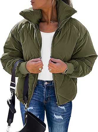 MEROKEETY Women's Long Sleeve Zipper Puffer Jacket Winter Quilted Short Down Coat with Pockets