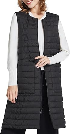 Women Long Puffer Vest Down Quilted Lightweight Sleeveless Jacket with Pockets