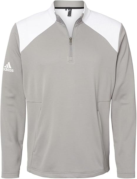 adidas Mens Textured Mixed Media Quarter-Zip Pullover, M, Grey Three/White