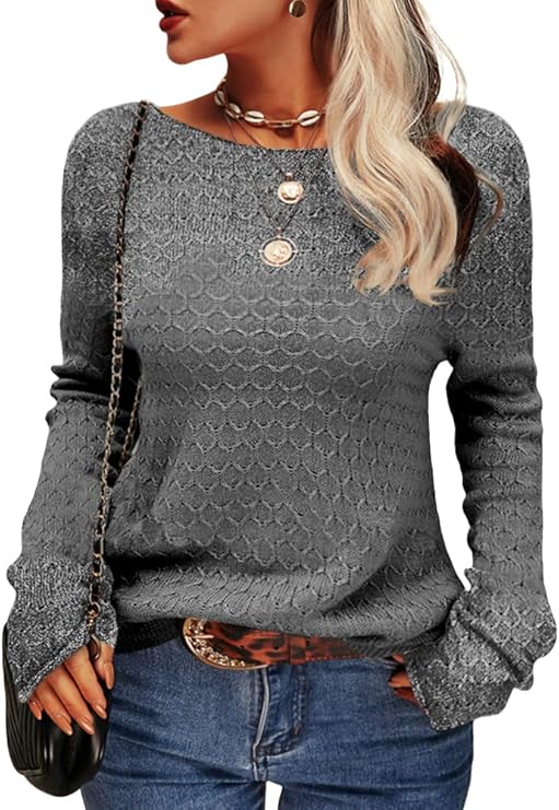 Danedvi Women Fashion Autumn Winter Pullover Sweater Round Neck Honeycomb Knitting Pattern Slim Fit Knitwear Tops