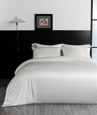 100% Silk 19mm 4-Pieces Duvet Cover Set Satin Comforter Cover Quilt King Size Queen Hotel Luxury Bedding Home(1 Duvet Cover + Pillow Shams + Fitted Sheet) (Ivory, Full)