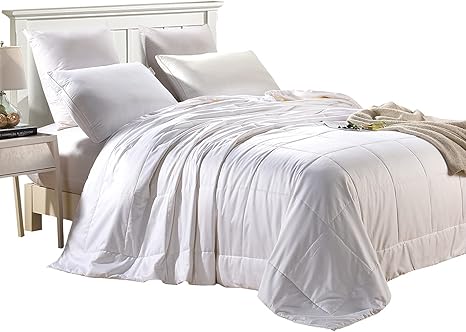 All-Season Silk Comforter, White Silk Duvet for Night Sweats Hot SleepersŠ_Ç100% Long Strand Mulberry Silk, 100% Cotton Duvet Cover(Queen(90-86in))