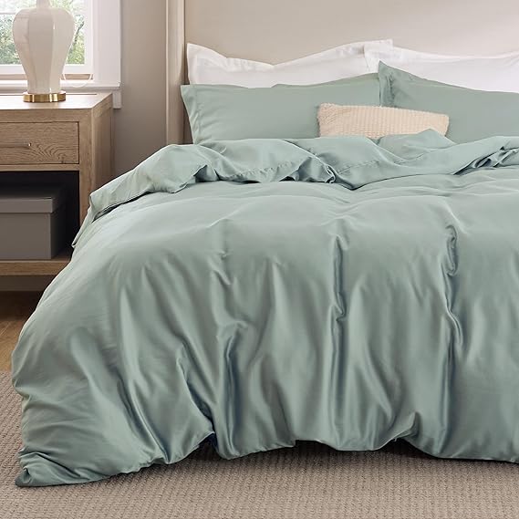 Bedsure Cooling Duvet Cover Queen Size - Silky and Breathable Eucalyptus Lyocell Cotton Hybrid Comforter Cover Set for Hot Sleeper - Hypoallergenic and Moisture Wicking Cooling Bedding, Jadeite Green