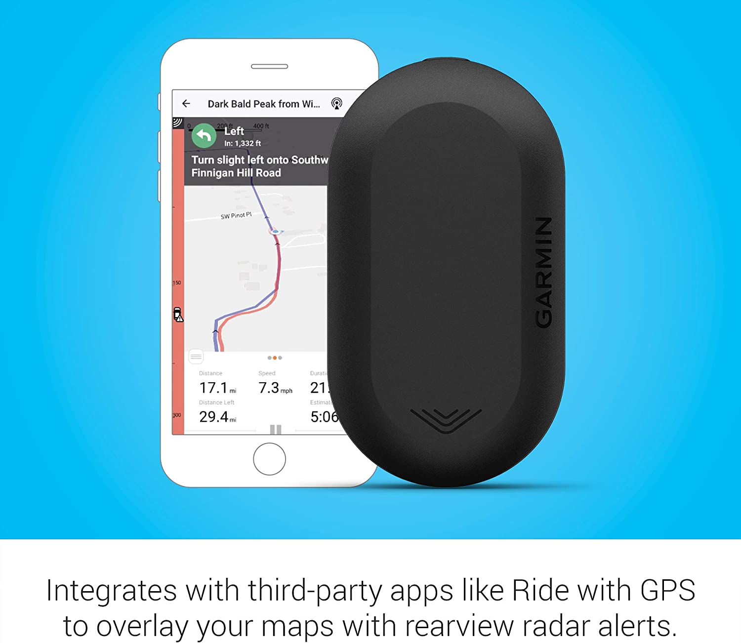 • When used with a compatible smartphone, Varia radar integrates with third-party apps such as Ride with GPS to overlay your maps with rearview radar alerts