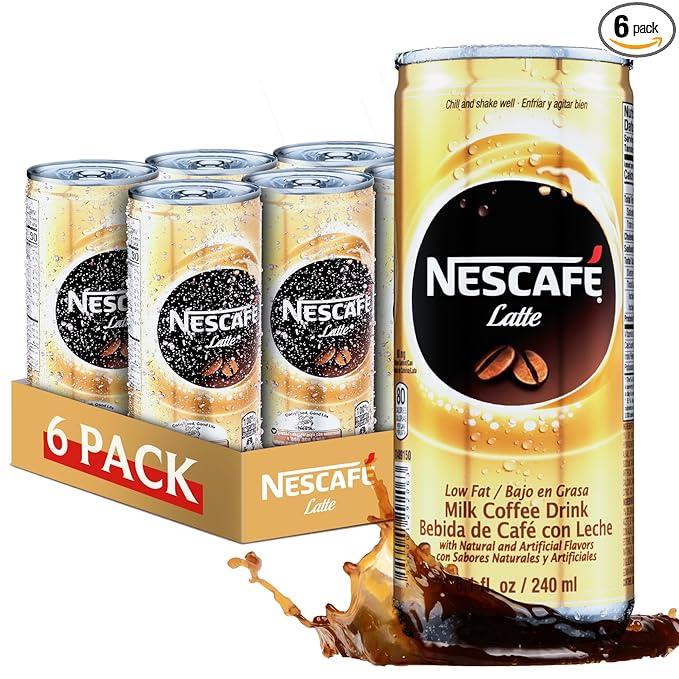 Nescafe Iced Coffee Drinks in Cans - Canned Coffee Drinks Beverages - Serve Chilled - Liquid Ice Coffee - Can Coffee, Iced & Ready to Drink - 8.1 oz Skinny Cans (6 Pack, Latte)