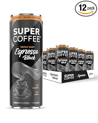 SUPER COFFEE Iced Keto Coffee, Liquid (Pack of 12), 4.17 kilograms | 0g Added Sugar, 10 Calories, Triple Shot Black | SoyFree, GlutenFree | 11 Fl Oz