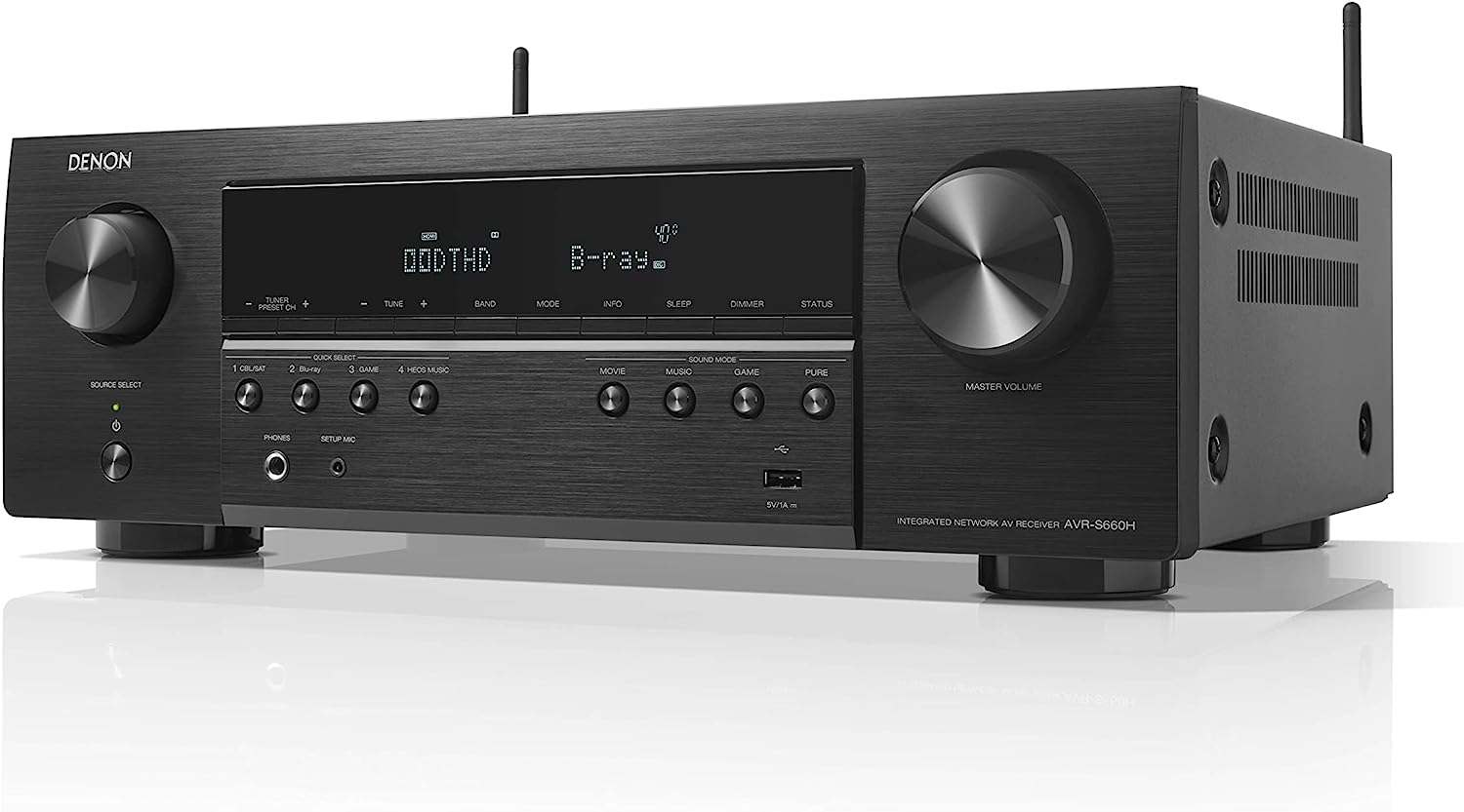 Denon AVR-S660H 5.2 Ch AVR (2021 Model), Advanced 8K Upscaling, 3D Audio - Dolby TrueHD, DTS:HD Master, Amazon Alexa (Renewed)
