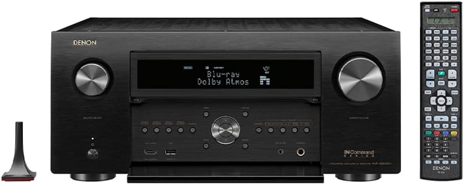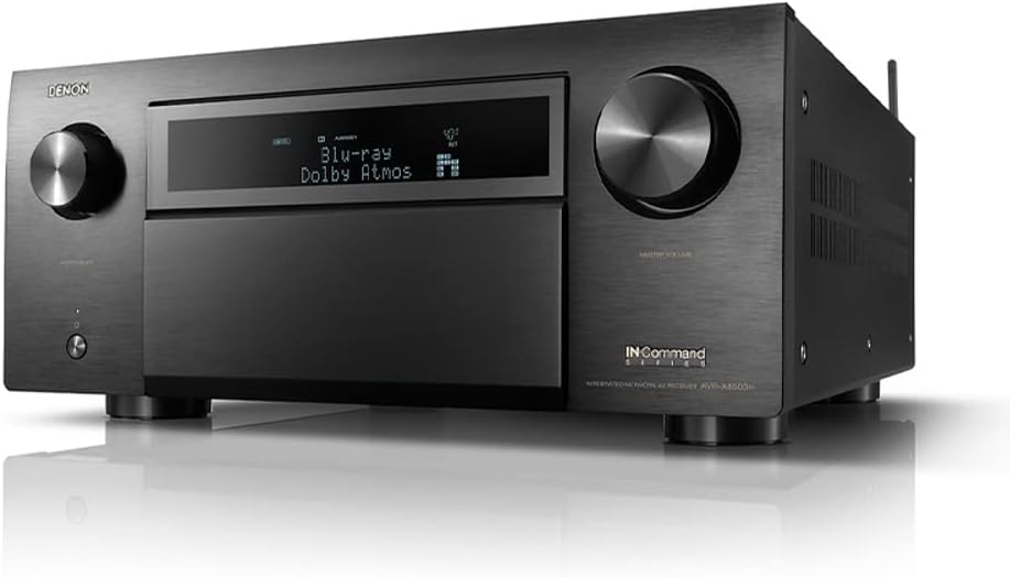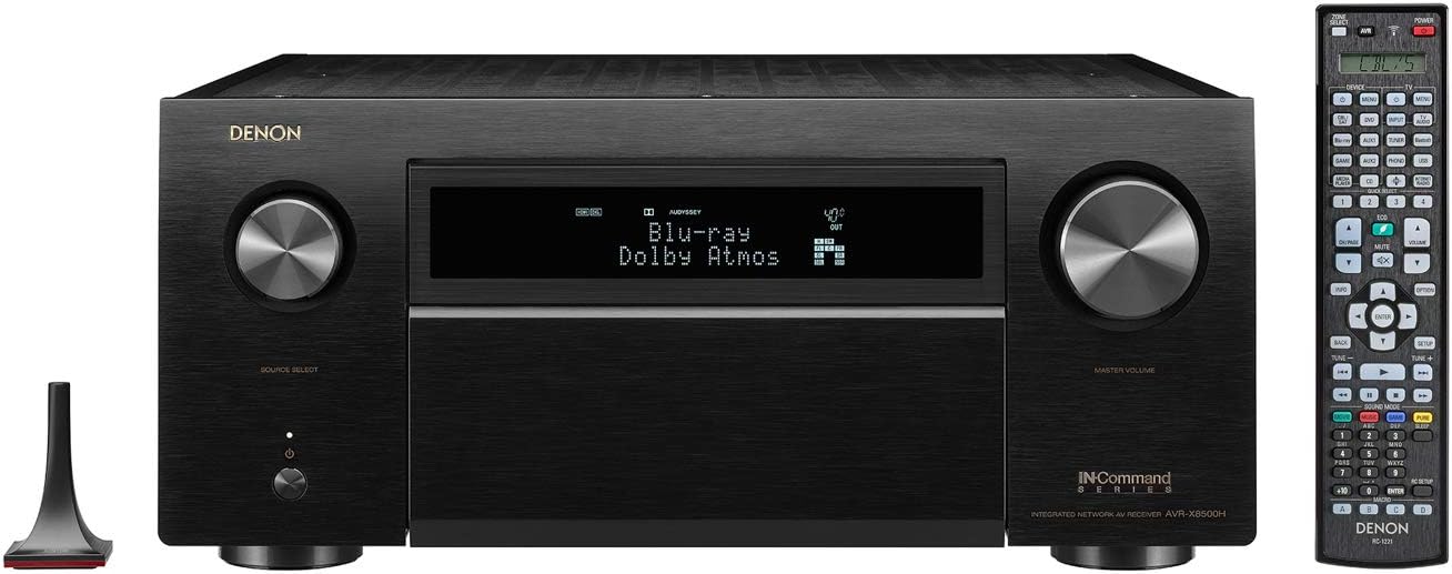 The Denon AVR-X8500HA 13.2 channel 8K UHD AV receiver sets the standard for the true home theater enthusiast. Upgrade your expectations with 13.2 channels to power the most immersive surround sound experience, with audio formats like Dolby Atmos, DTS:X, DTS:X Pro, IMAX Enhanced, and Auro-3D. Stream your music throughout your home with HEOS-Built-in for services like Spotify, Amazon Music HD, Pandora, TIDAL, and more. Enjoy exceptional video performance thanks to the latest HDMI technologies such as 8K/60Hz pass-through or upscaling, various HDR format support including HDR10, HDR10+, Dolby Vision, Hybrid Log-Gamma (HLG) and Dynamic HDR, as well as the latest gaming technologies such as 4K/120Hz pass-through, Variable Refresh Rate (VRR), and Auto Low Latency Mode (ALLM).