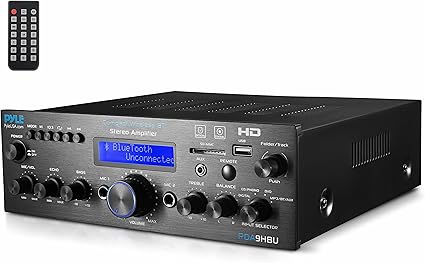 PyleUsa Wireless Bluetooth Home Stereo Amplifier - Multi-Channel 200 Watt Power Amplifier Home Audio Receiver System w/ HDMI, Optical/Phono/Coaxial, FM Radio, USB/SD, AUX, RCA, Mic in Remote - PDA9HBU.6
