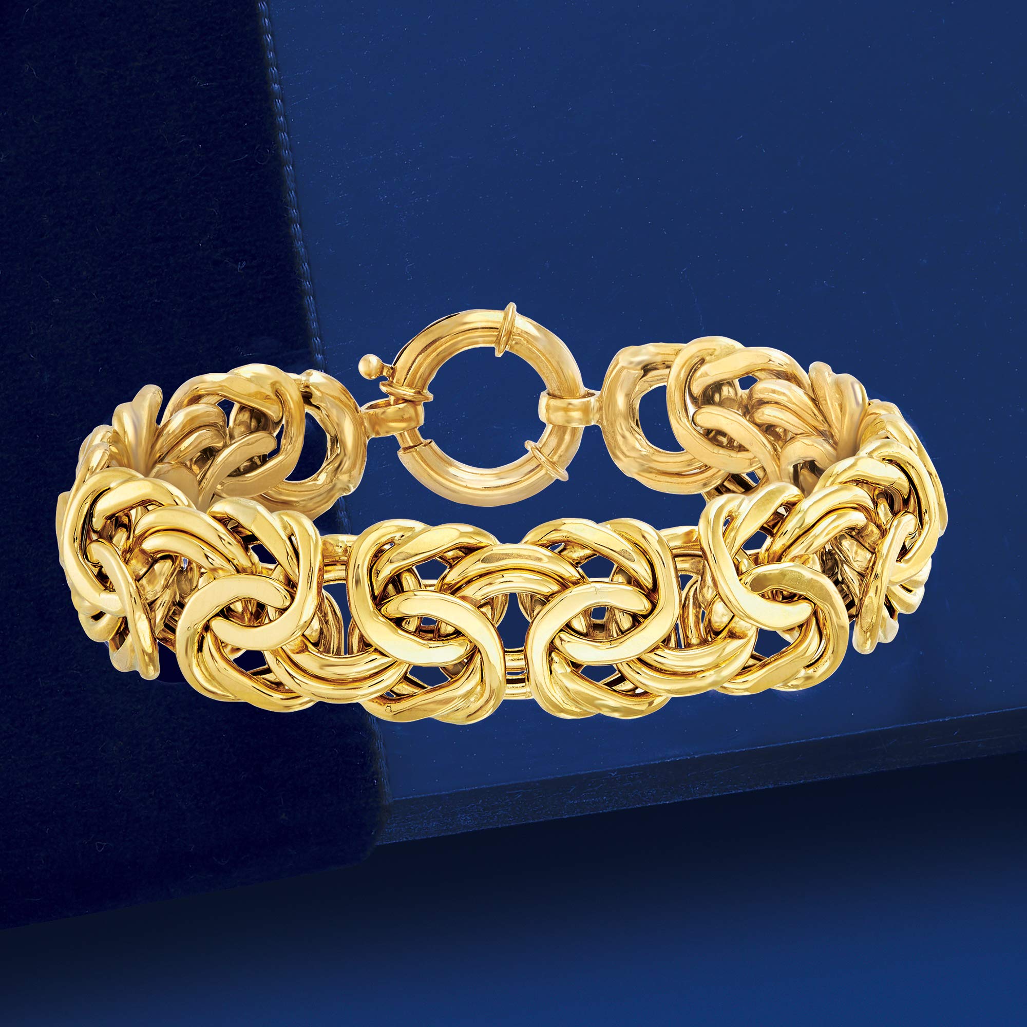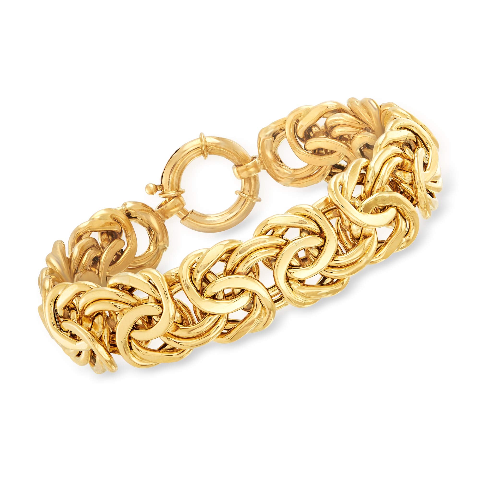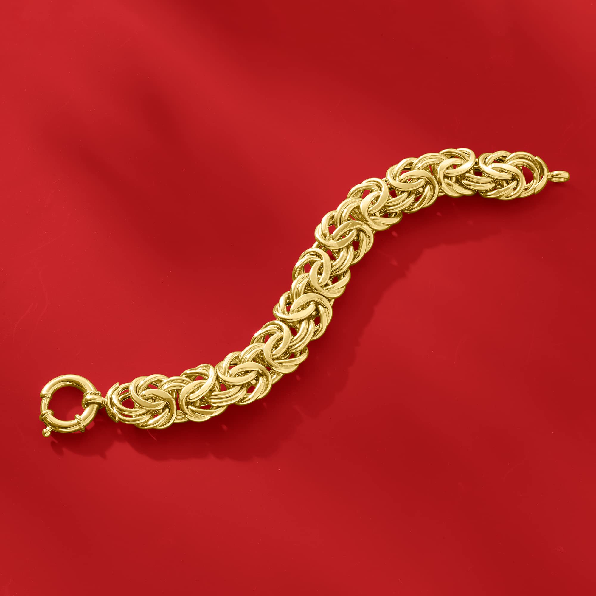 Details: Established in 1952, Ross-Simons presents contemporary styles with a timeless appeal. An enduring beauty exquisitely handcrafted in lustrous 18kt yellow gold. Our timeless Byzantine bracelet will continue to transcend style and deliver elegance for a lifetime. Polished finish. Springring clasp, 18kt yellow gold Byzantine bracelet.