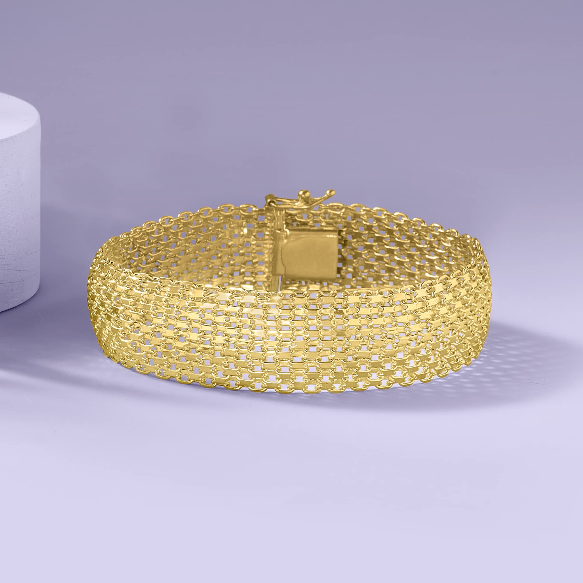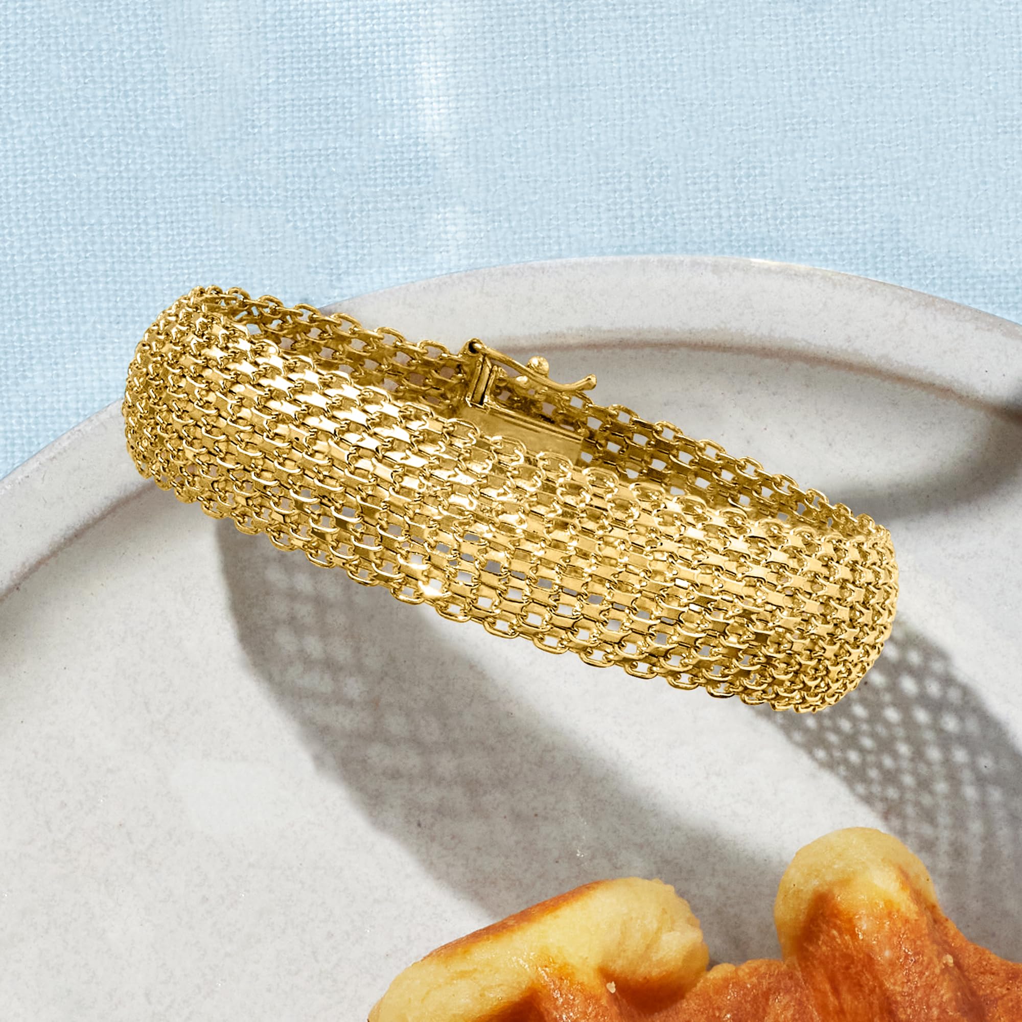 Details: With a commitment to quality and affordability, Ross-Simons presents timeless jewelry for the modern woman. Luxe 14kt yellow gold Bismark links shine across this mesmerizing bracelet from Italy. This iconic pattern is a classic you will reach for again and again! Shimmering in a polished design, this bracelet will match all your favorite looks. Figure 8 safety. Box clasp, 14kt yellow gold Bismark-link bracelet. Each Ross-Simons item arrives in a fine jewelry presentation box.