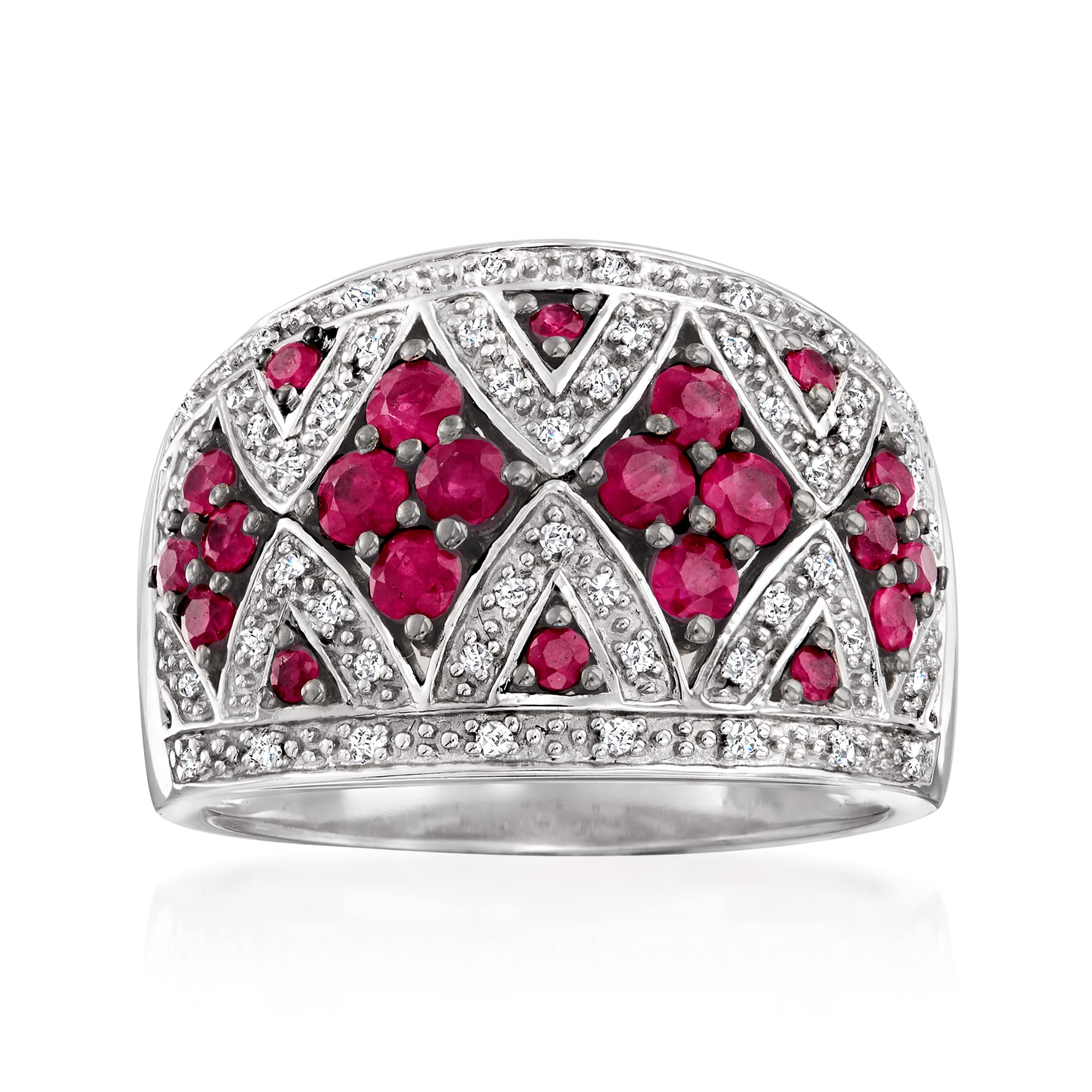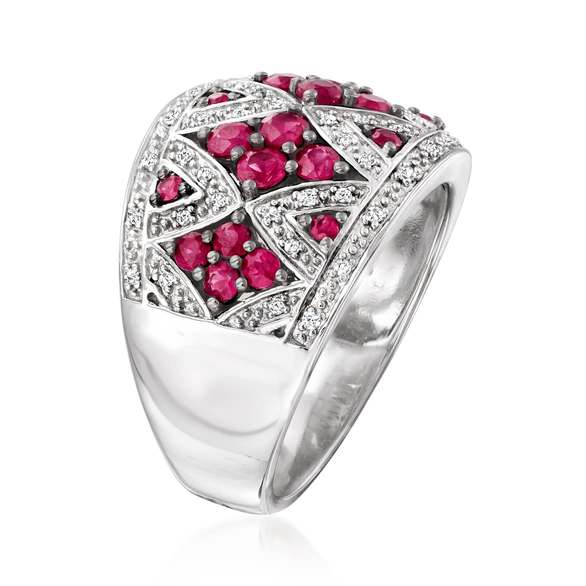 Details: Ross-Simons is the authority on fashionable must-haves. Like a bushel of fresh red berries, this sparkling ruby and diamond dome ring is filled with appeal! It features 1.00 ct. t.w. ruby rounds and .10 ct. t.w. diamonds in a luscious display of sterling silver with black rhodium. 1/2" wide. Diamond and ruby ring.