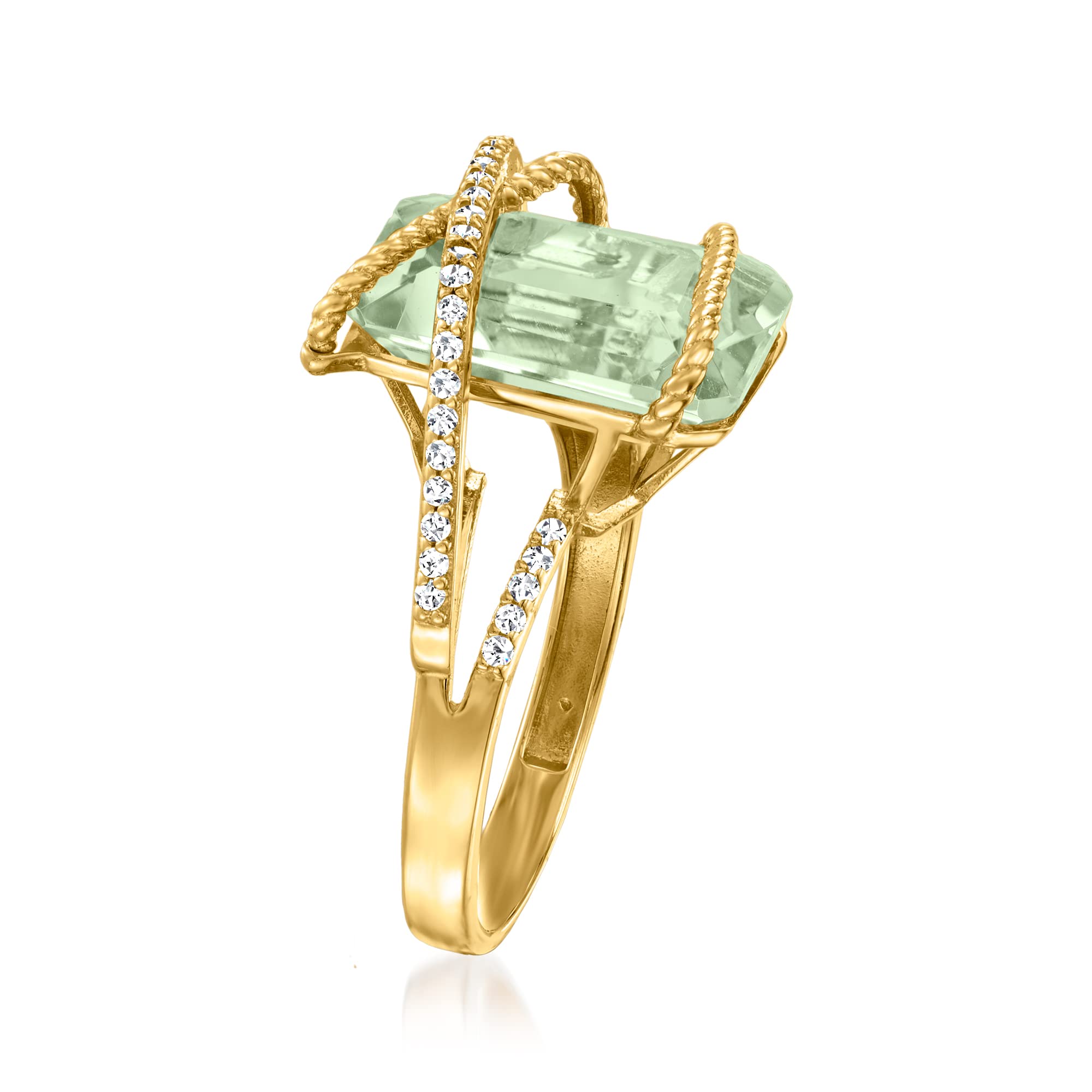 Ross-Simons 7.00 Carat Prasiolite and .15 ct. t.w. Diamond Ring in 14kt Yellow Gold. Size 7